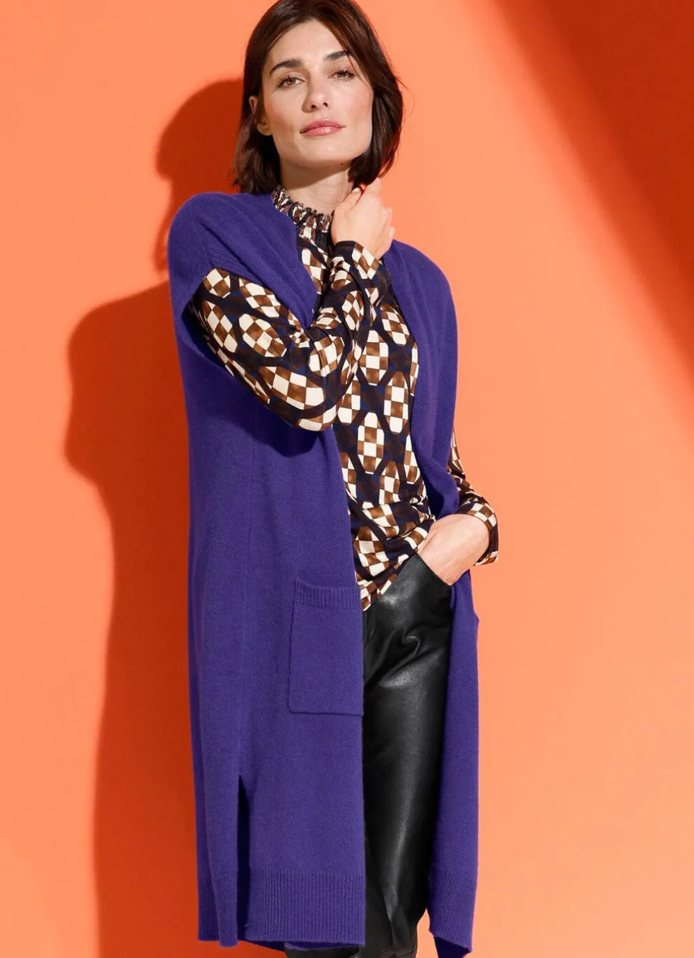 Long-Strickweste in Feinstrick