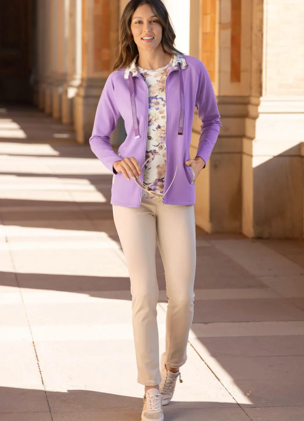 Die tragangenehme Qualität: querelastischer Power-Stretch-Denim, 65% Baumwolle, 31% Polyester und 4% Elasthan; in Grafit, Beige, Hellgrau, Rosé, Taupe und Bordeaux aus 91% Baumwolle, 6% Polyester und 3% Elasthan. Nach Öko-Tex Standard 100