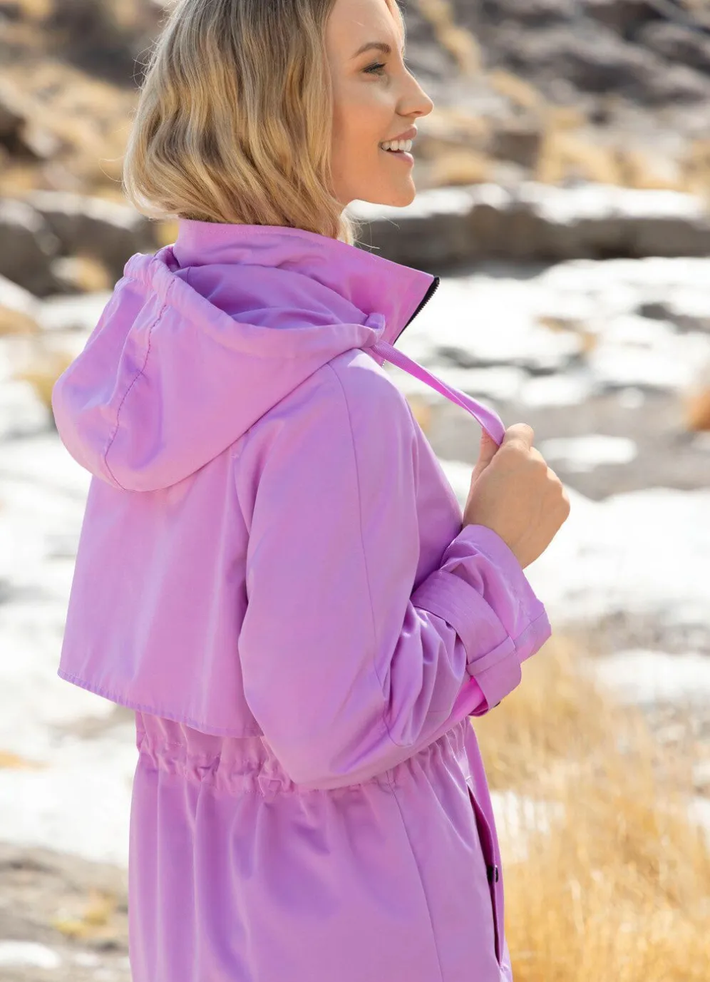 - abnehmbare Kapuze mit Bindeband
