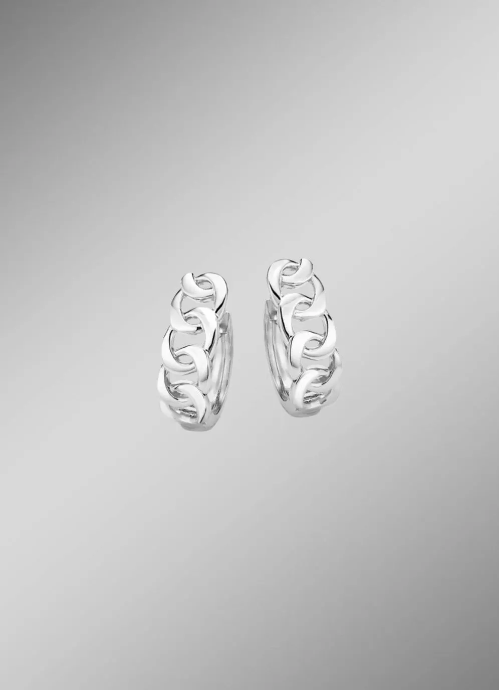 Klarer Glanz trifft kantigen Charakter. Verleihen Sie Ihrem Stil eine markante Note mit diesen Klappcreolen aus Silber 925/- fein. Ihr glänzendes Finish und das kraftvolle Panzerkettendesign vereinen Eleganz mit urbanem Flair – ein Statement für selbstbewusste Looks. Die 18 mm lange Form ist perfekt dimensioniert: auffällig genug, um gesehen zu werden, dezent genug für jeden Anlass.