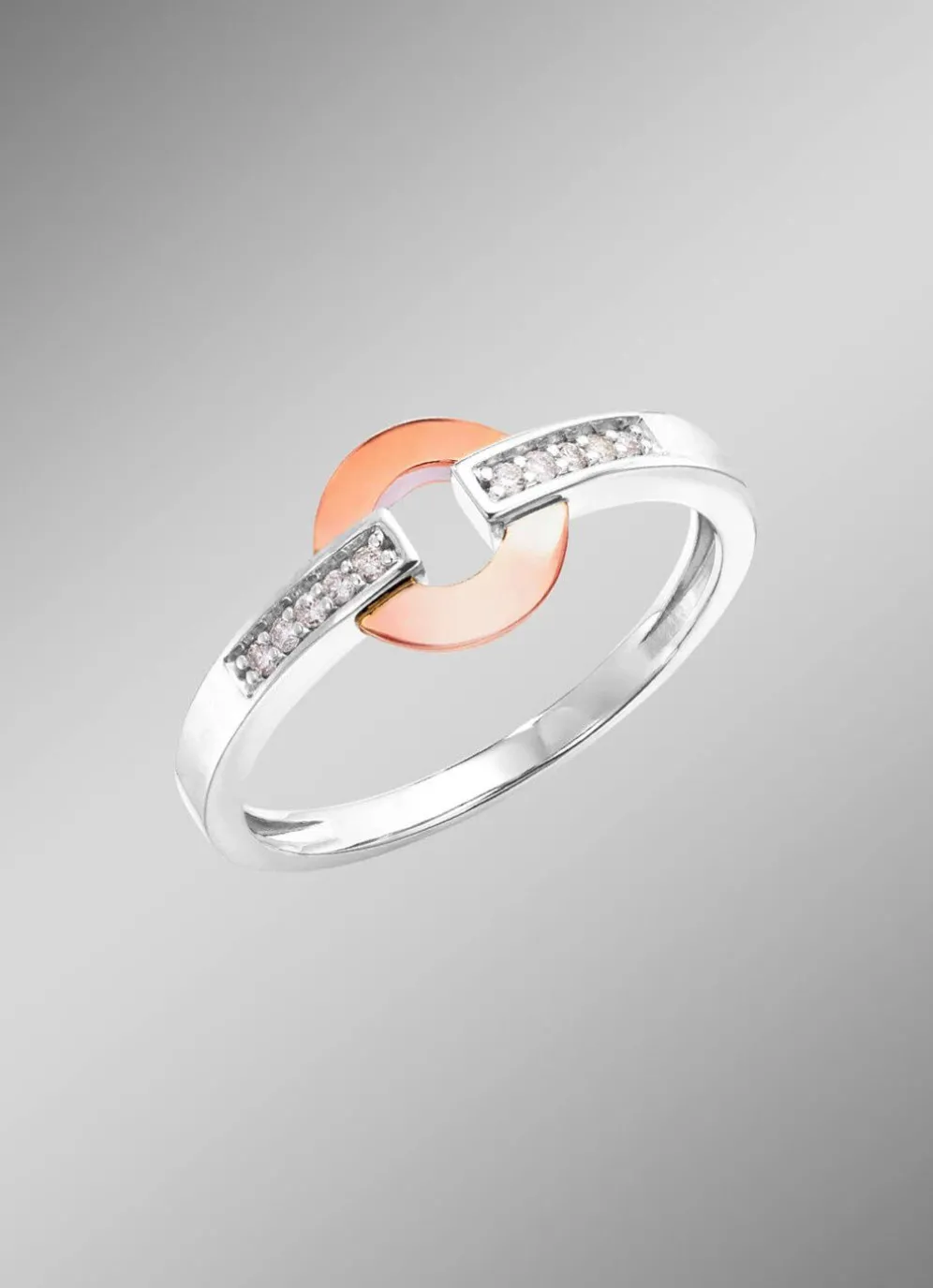 Moderner Damenring in Bicolor mit 10 Brillanten