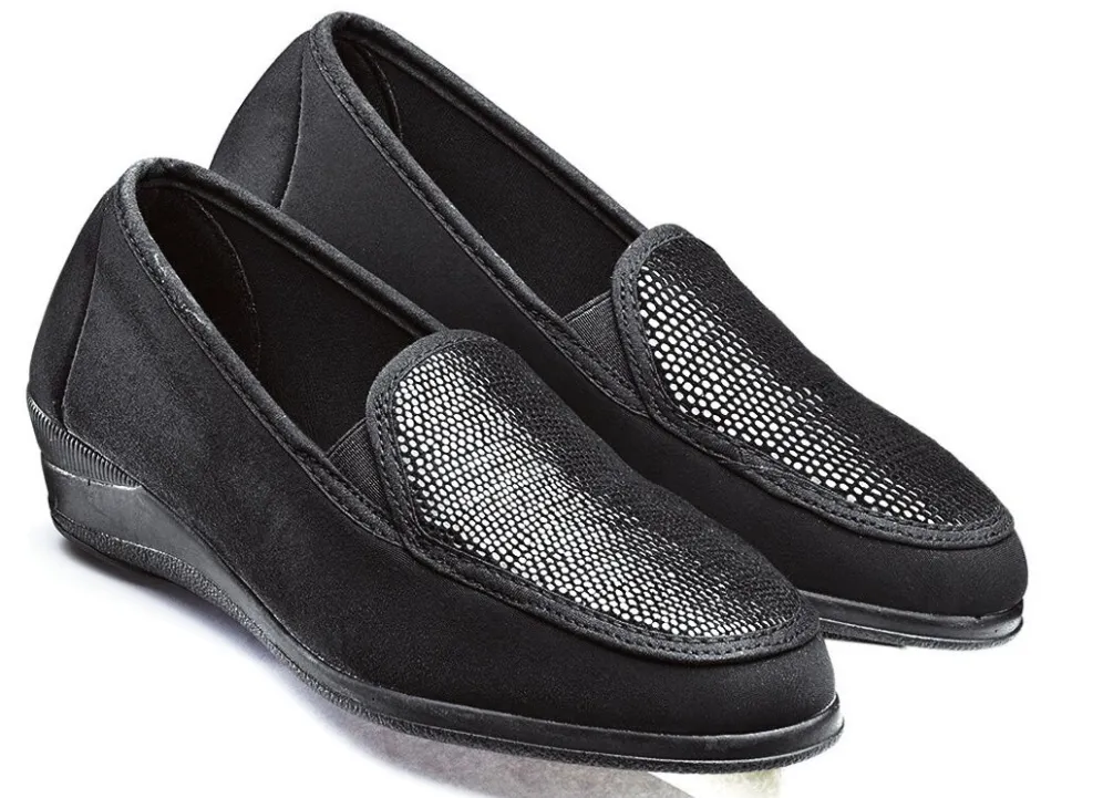 Durch das dehnbare Material ist der Schuh bei sensiblen Problemfüßen oder deformierten Füßen sehr gut geeignet. Elegante Krokooptik auf der Fußlasche.
