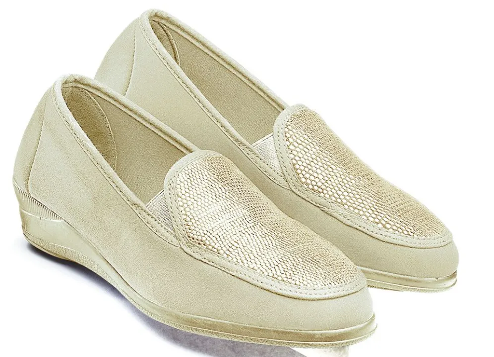 Durch das dehnbare Material ist der Schuh bei sensiblen Problemfüßen oder deformierten Füßen sehr gut geeignet. Elegante Krokooptik auf der Fußlasche.