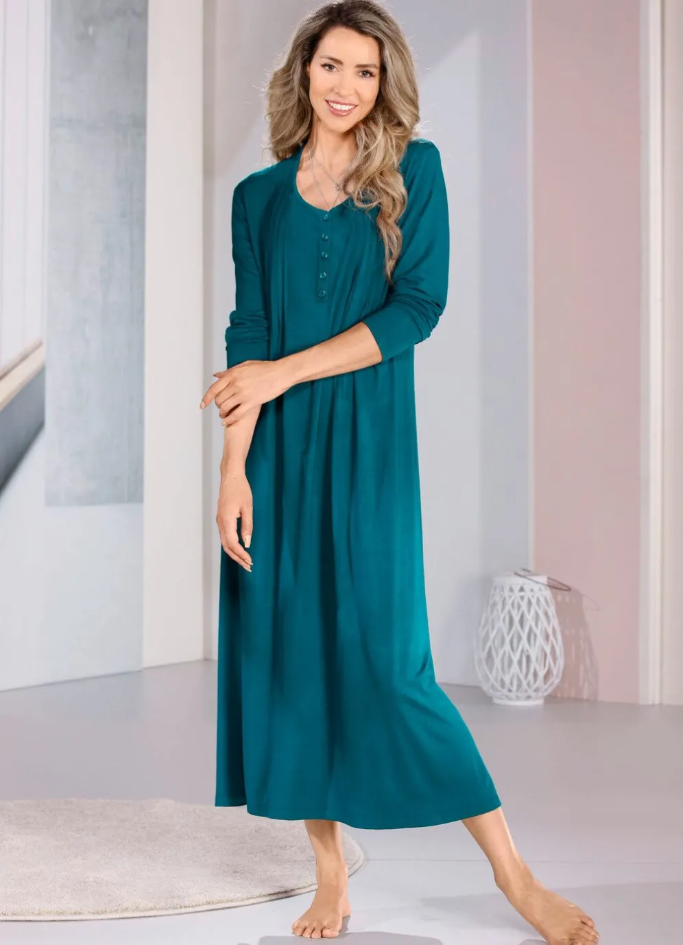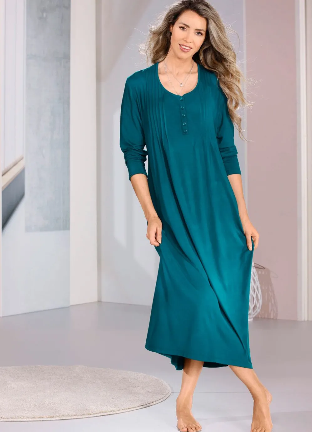 Wunderbares, knöchellanges Nachthemd mit Knopfleiste, aufwendiger Biesenverarbeitung