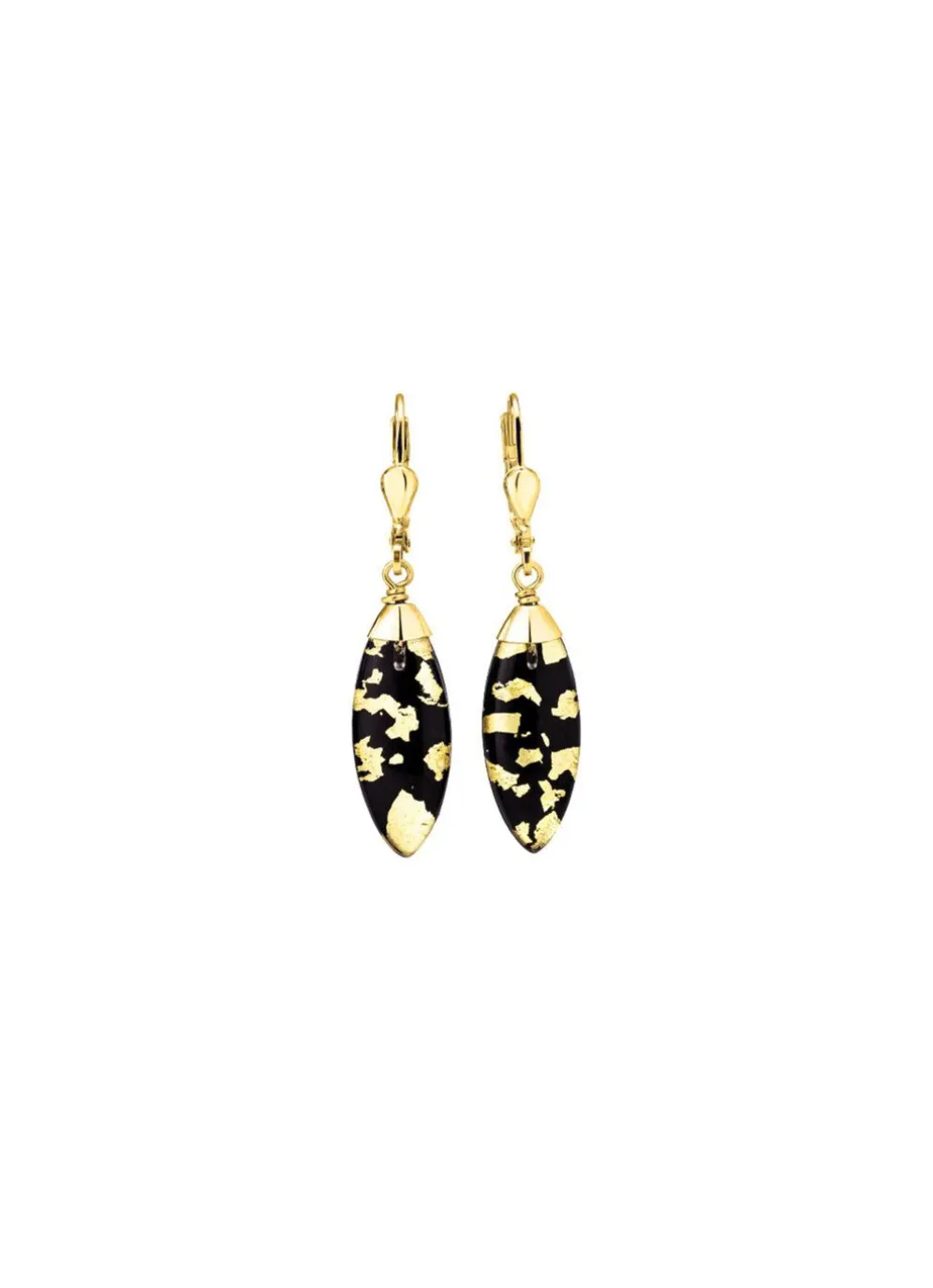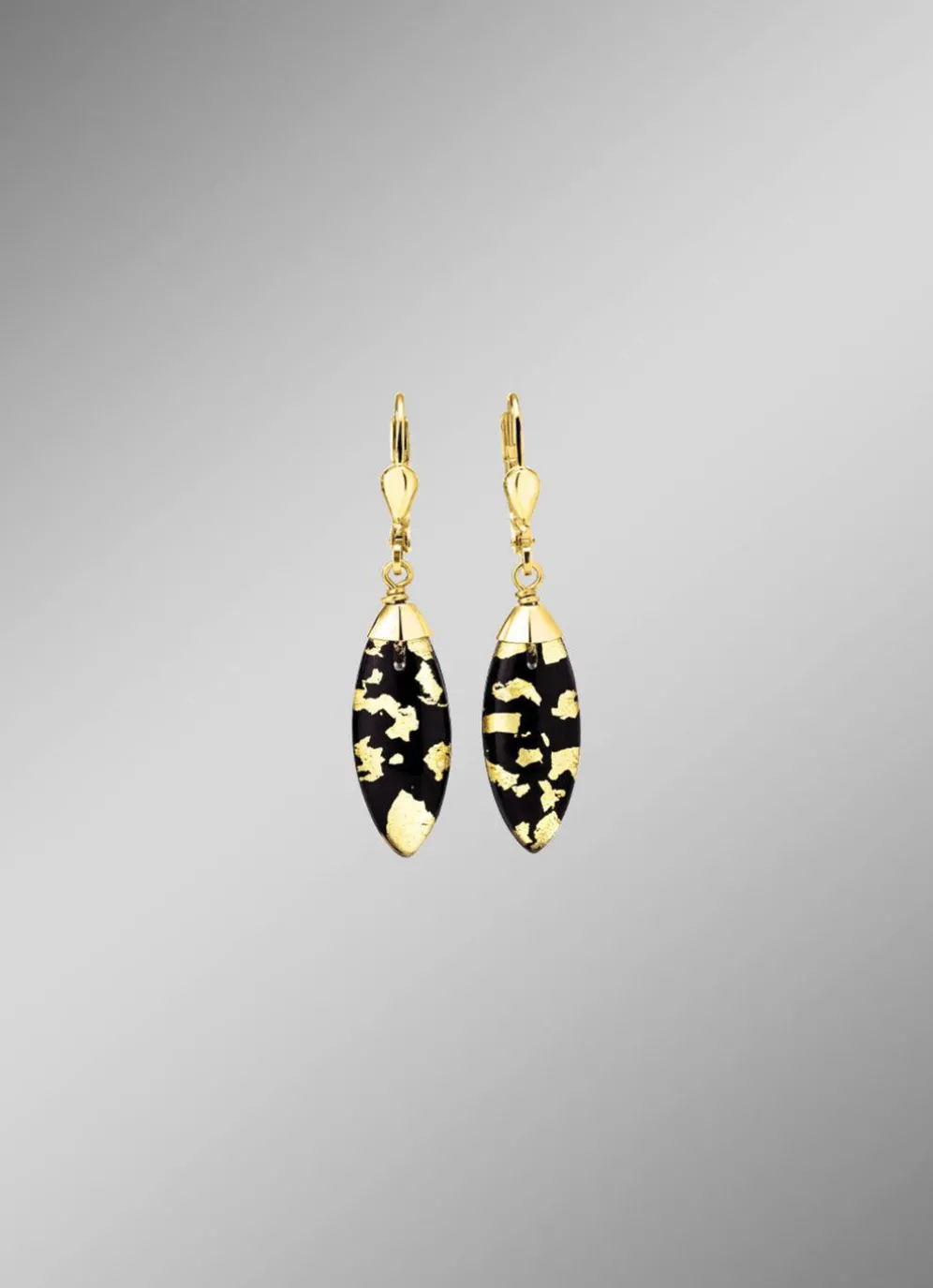 Ohrringe mit Onyx, beh. und Bergkristall mit Blattgold-Triplette