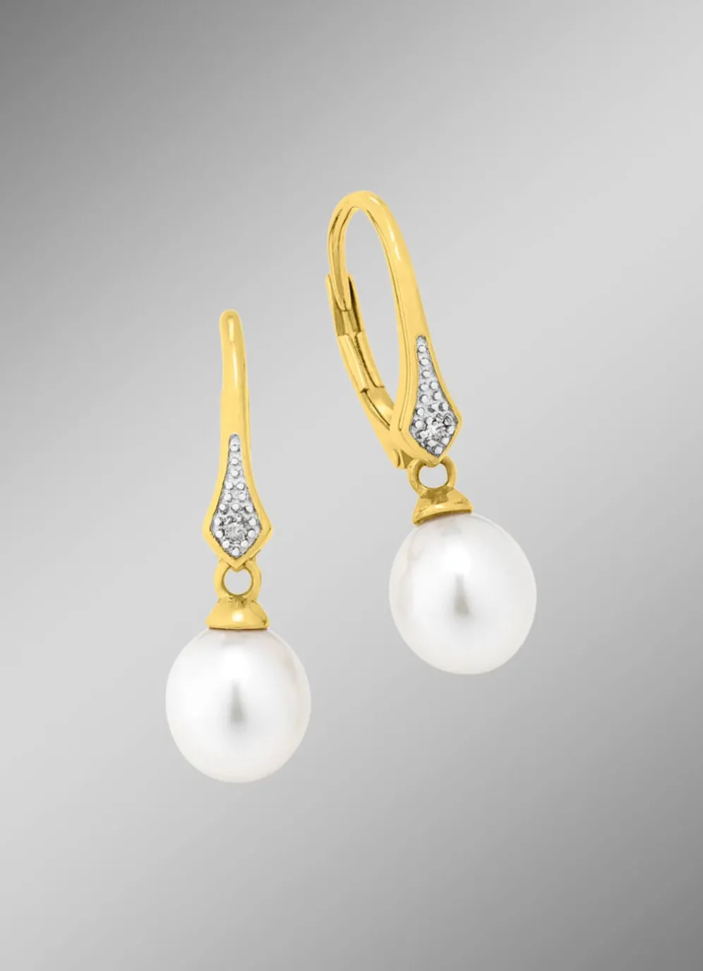 Ohrringe mit Süßwasser-Zuchtperlen und Diamanten