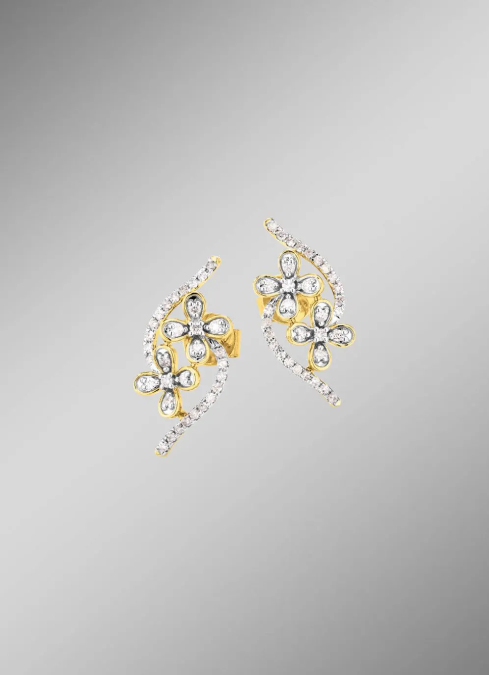 Diese eleganten Ohrstecker aus Gold 375/- fein bringen florale Schönheit und funkelnden Luxus in perfekter Harmonie zusammen. Das zarte Blumen-Design wird von 20 weißen Brillanten und 44 weißen Diamanten in Piqué 2-Reinheit veredelt, die gemeinsam etwa 0,27 Karat ergeben. Mit einer Länge von 19 mm setzen die Ohrstecker stilvolle Akzente und verleihen jedem Look eine feminine Note.