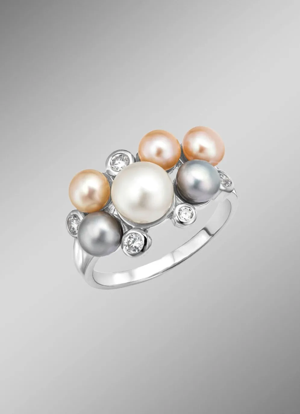 Perlenglanz und strahlende Eleganz: Damenring mit Süßwasser-Zuchtperlen