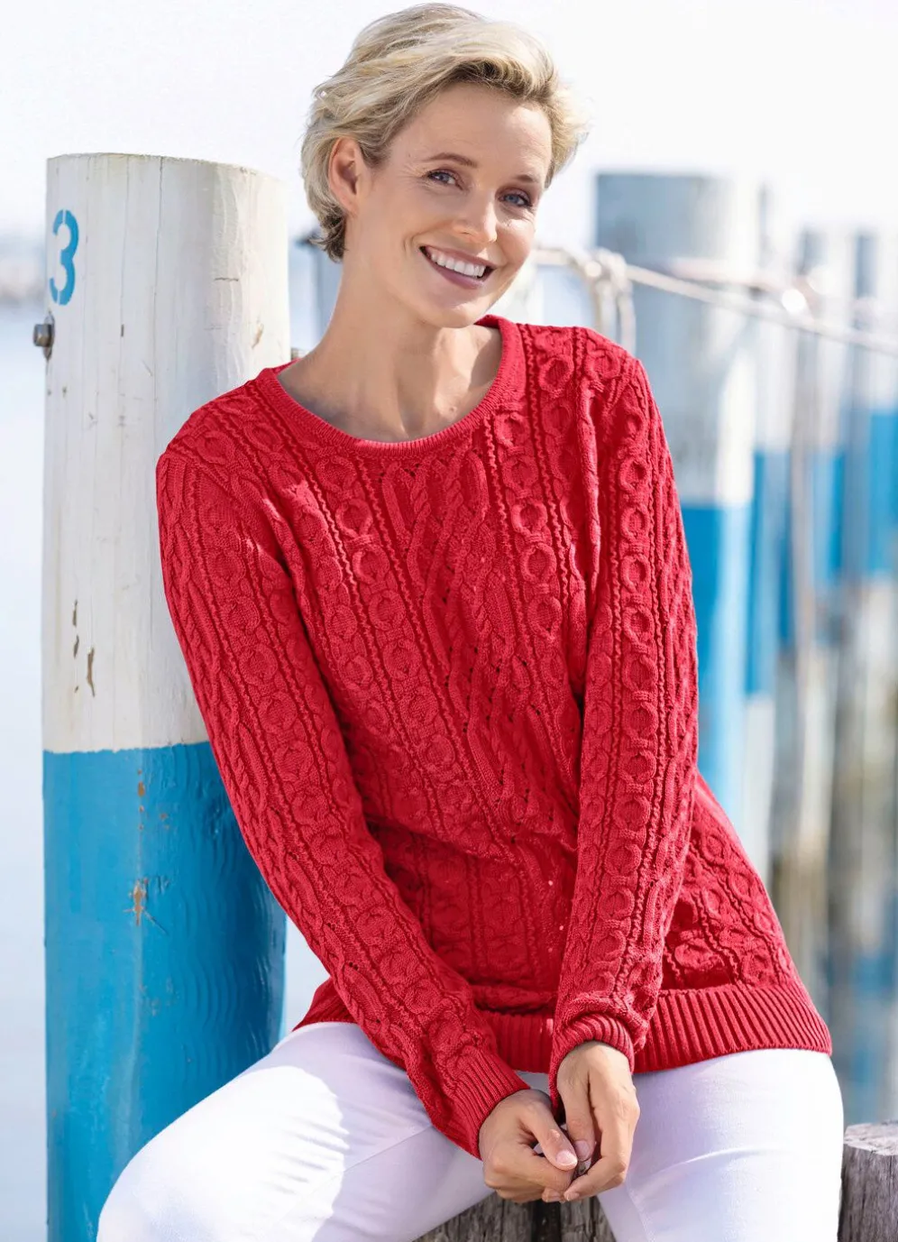 Sportiver Pullover mit streckendem Strukturmix im Vorderteil und an den langen Ärmeln, rundem Halsausschnitt sowie gerippten Abschlüssen.