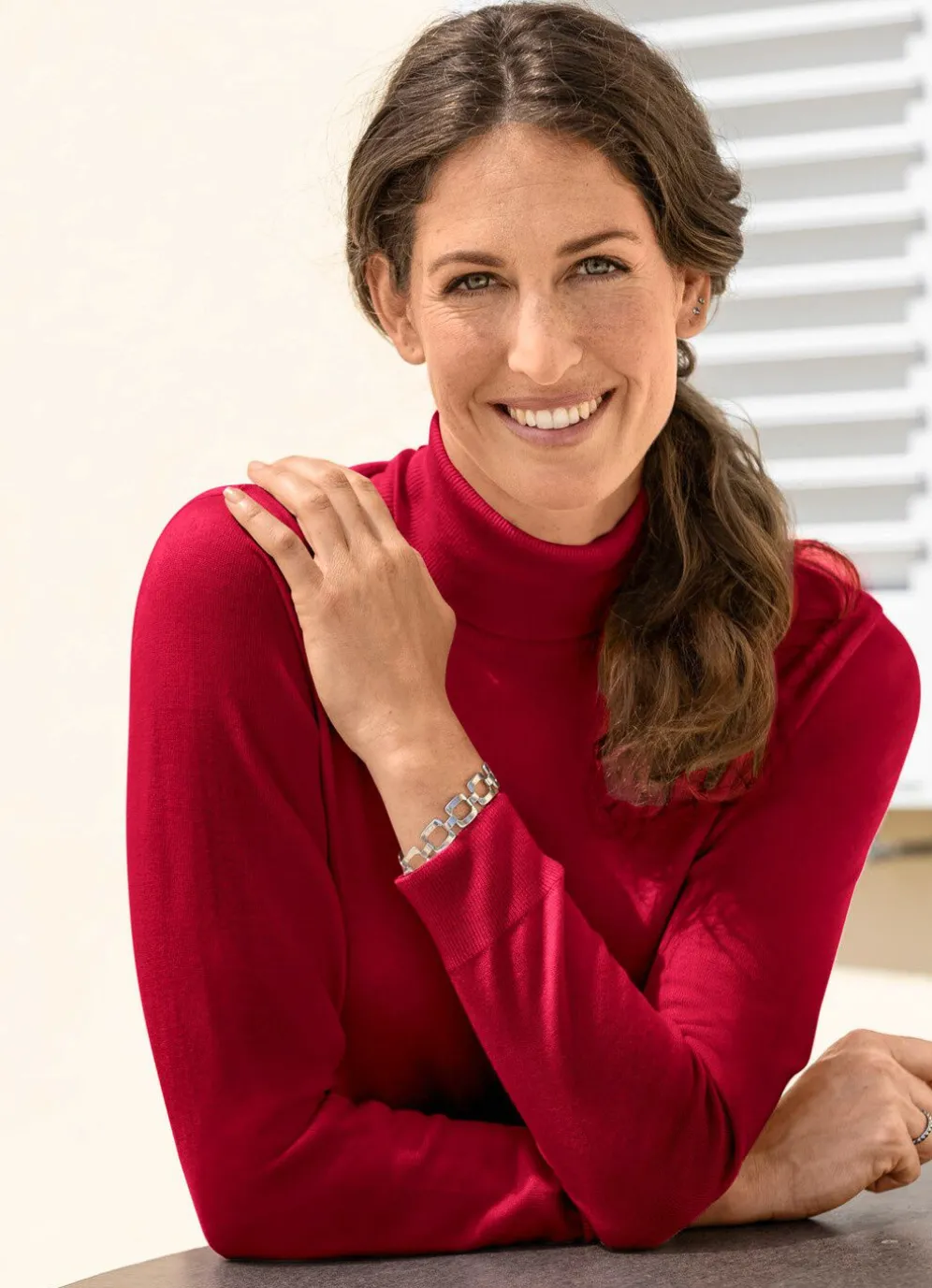Ein perfekter Kombibegleiter ist dieser Pullover mit Rollkragen, langen Ärmeln sowie Bündchenabschlüssen.