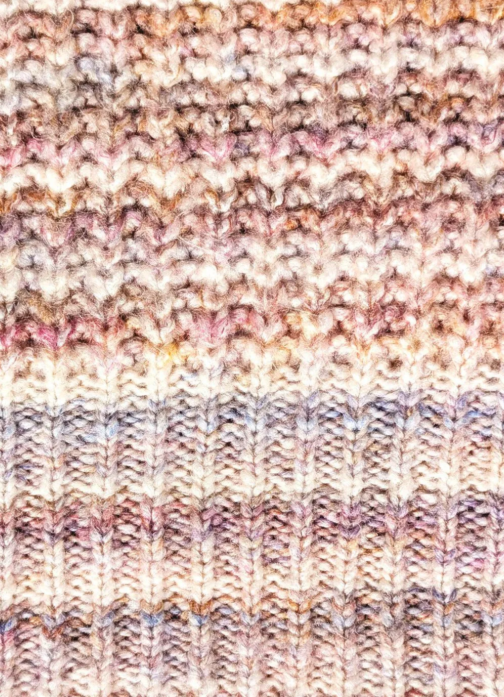 Jedes Teil ein Unikat! Pullover in Ecru-Rosa-Multicolor: gerippter Rollkragen, modische Perlfangstruktur mit tollen Melange-Effekten und Farbverlauf allover sowie Rippenbündchen an den Abschlüssen der langen Raglanärmel und am Saum.