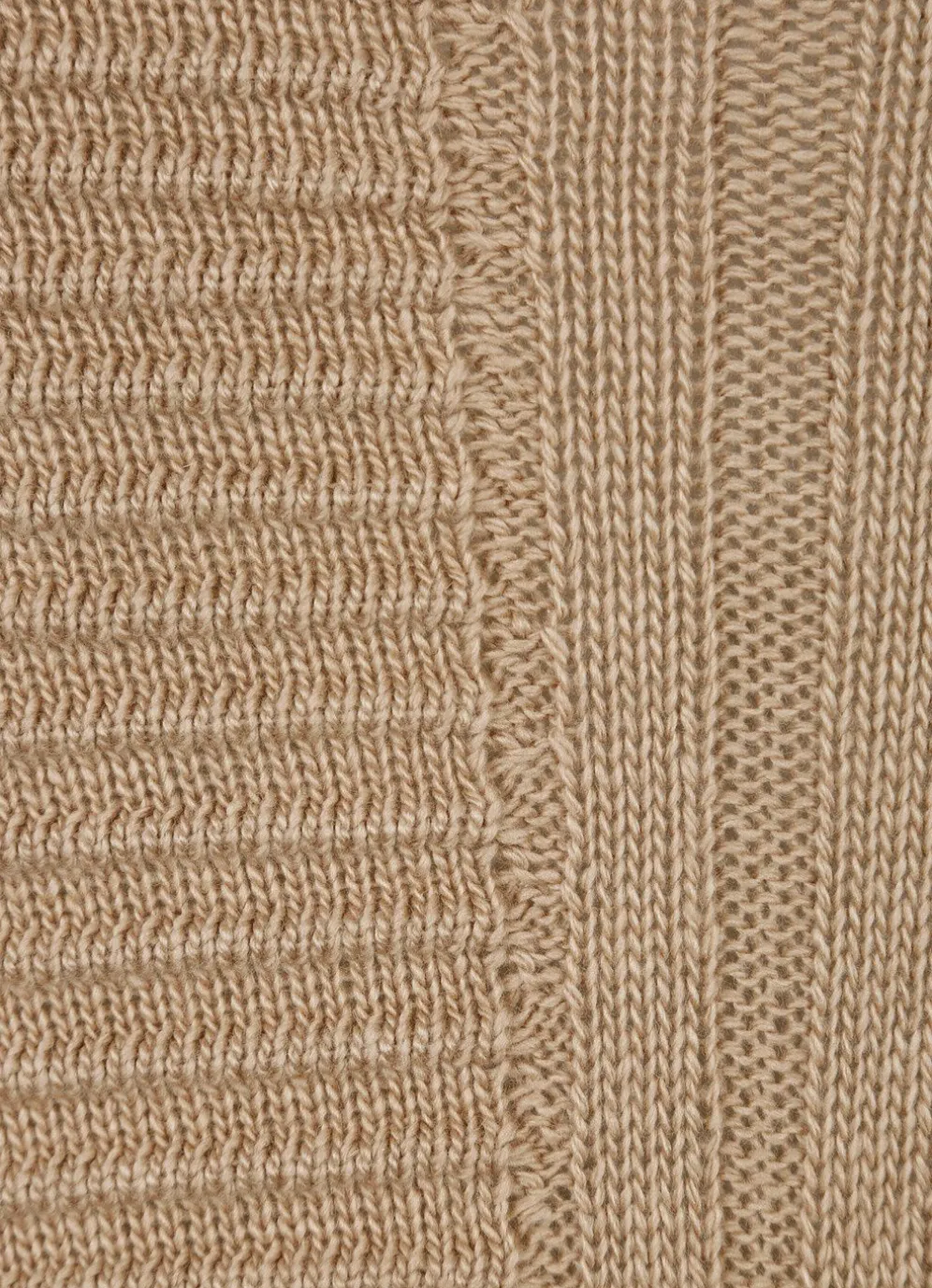 Pullover: Turtleneck, lange Umschlagärmel in Rippenstrick, Rippensaum, Vorder- und Rückteil geteilt mit Längsrippen und Strukturstreifen.