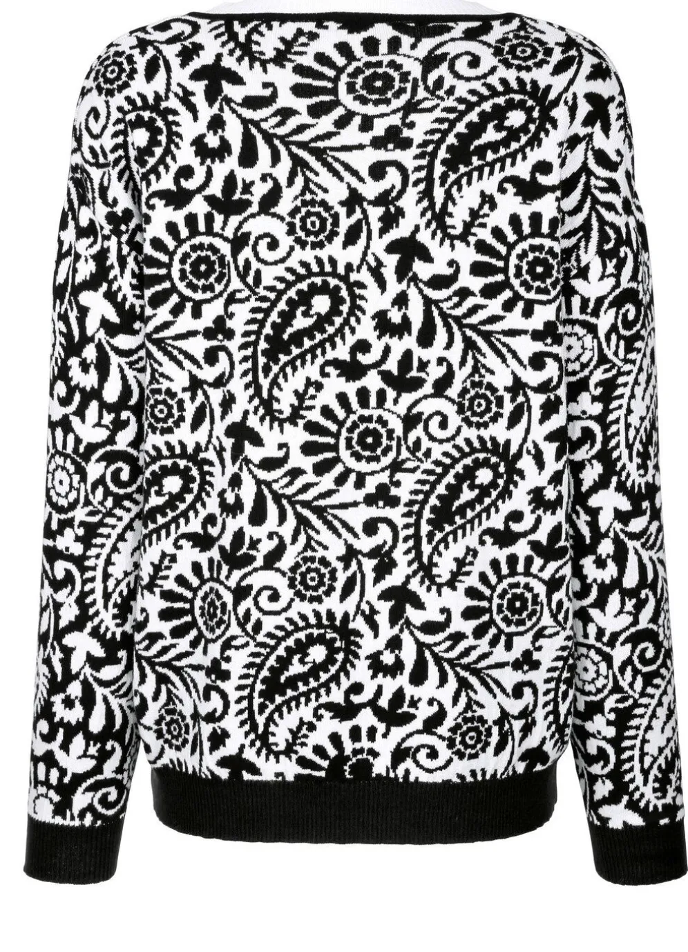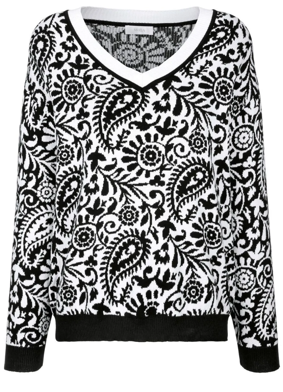 Pullover im Paisley-Ranken-Dessin, mit V-Ausschnitt, langen Ärmeln und gerippten Kontrastabschlüssen.