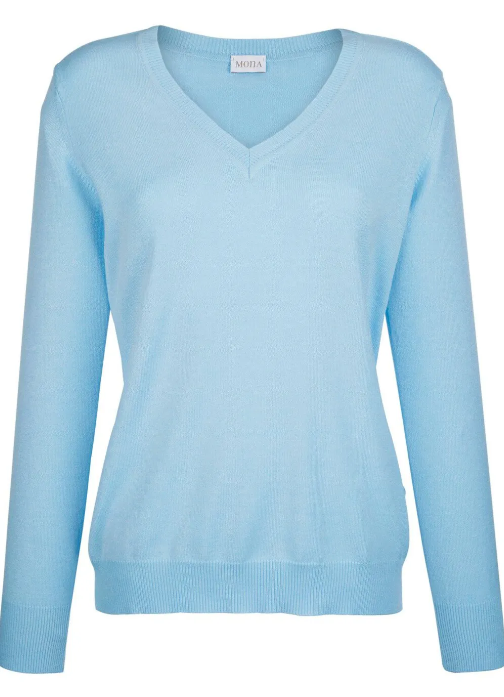Fließend weicher Pullover mit V-Ausschnitt, langen Ärmeln sowie Bündchenabschlüssen.