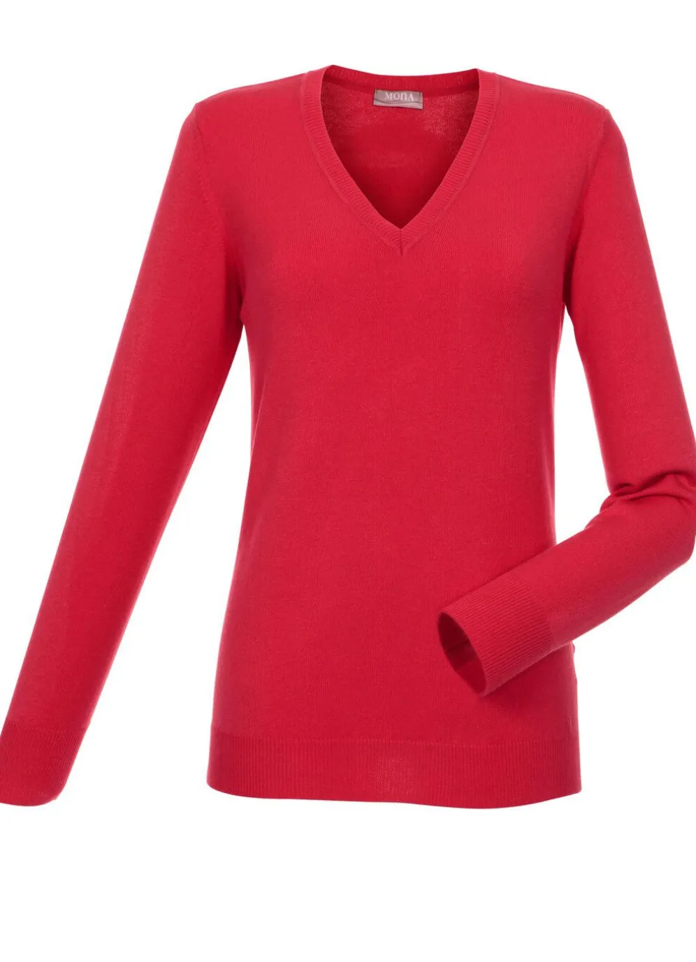 Fließend weicher Pullover mit V-Ausschnitt, langen Ärmeln sowie Bündchenabschlüssen.