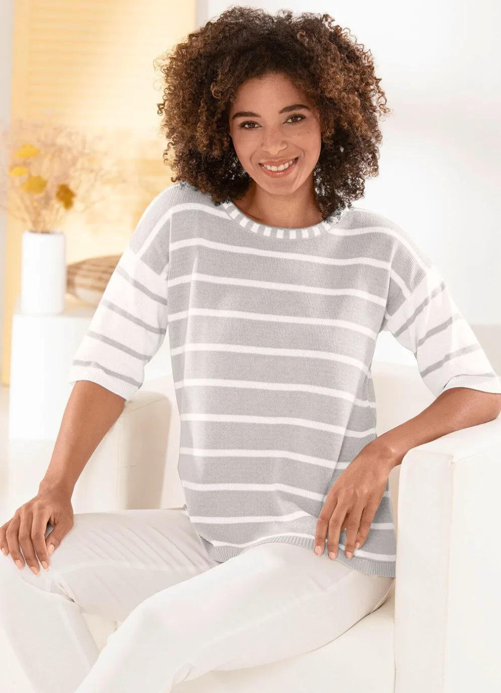 Legerer Pullover mit hübschen Kontrasten, rundem Halsausschnitt sowie schmalem Rippenbund an den Abschlüssen der kurzen Ärmeln und am Saum.