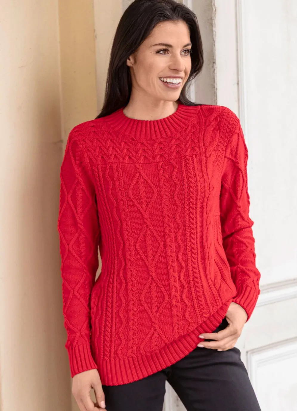 Ausdrucksstarker Pullover mit Stehbund, aufwendigem Mustermix im Vorderteil und an den langen Ärmeln sowie gerippten Abschlüssen.