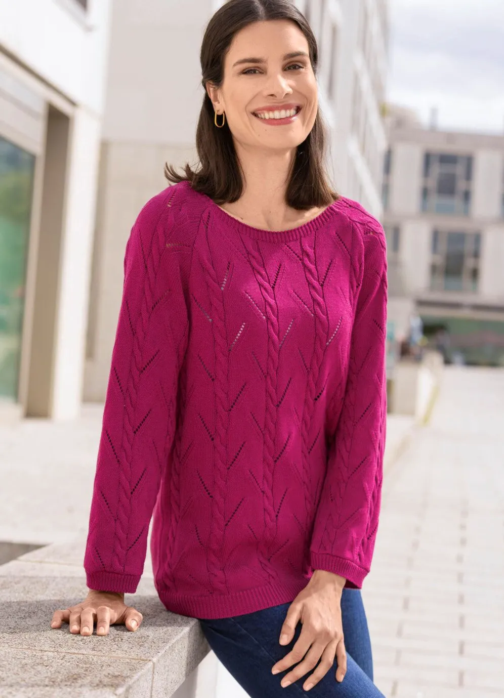 Pullover mit Zopfstrukturen und Ajourmustermix
