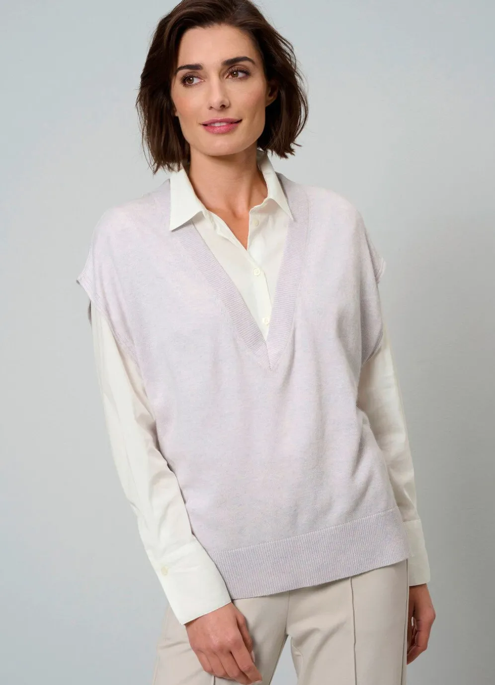 Pullunder: weite Form, dezenter Melange-Effekt, V-Ausschnitt, Seitenschlitze, verlängertes Rückteil.