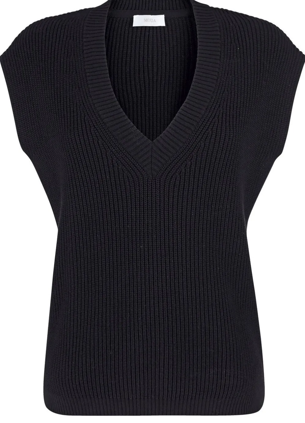Individueller Pullunder in leicht taillierter Form mit überschnittener Schulterpartie sowie V-Ausschnitt.