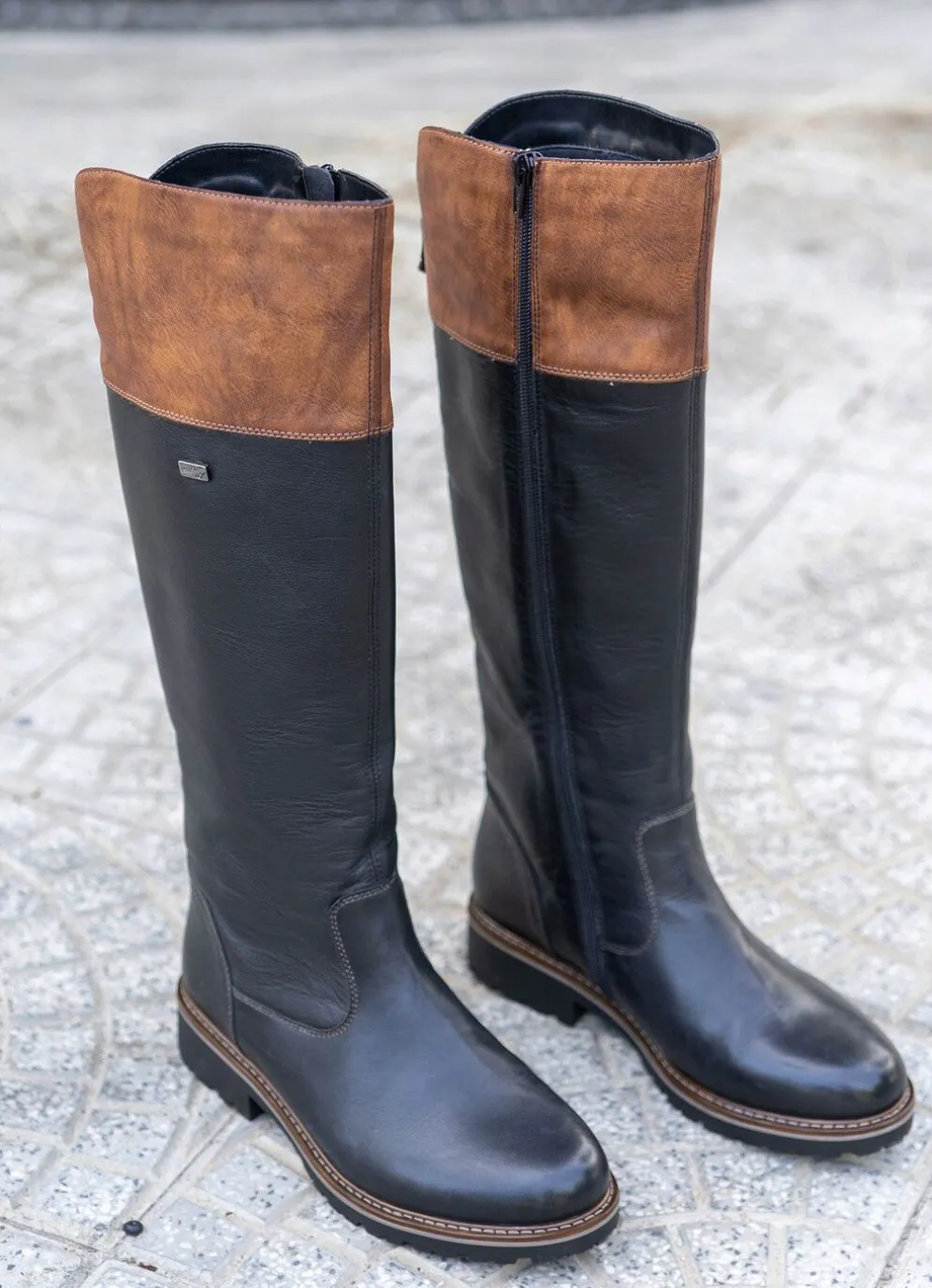 Stiefel aus dezent schattiertem Nappaleder mit Schaftabschluss aus Synthetik: in Weite G, mit Klimamembrane ausgestattet, rückwärtiger Reißverschluss zur Weitenregulierung, Innenreißverschluss, leichtes Warmfutter, gepolsterte Decksohle, leichte Synthetik-Profilsohle und 25 mm Absatz. Schafthöhe ca. 41 cm, variable Wadenweite bei Gr. 37 ca. 34-37 cm