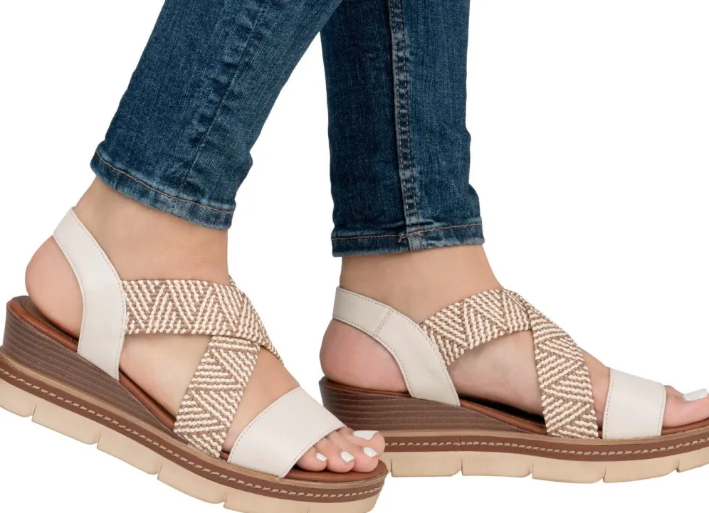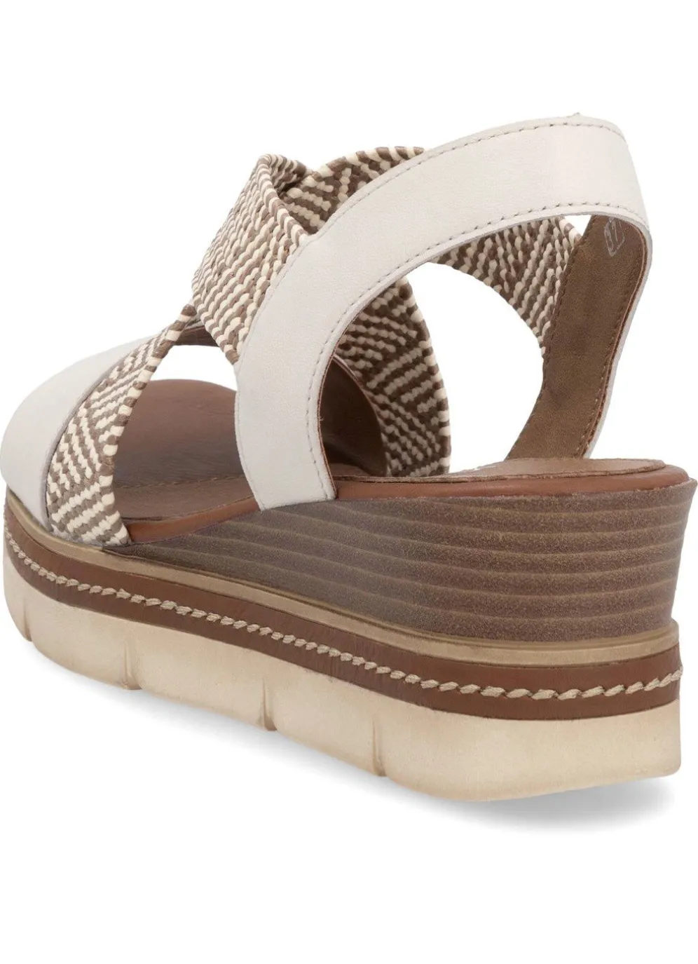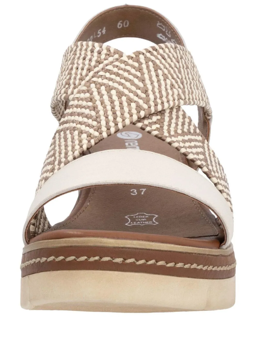 Schicke Sandalette aus Nappaleder mit Synthetik-Flechtdurchzügen: Futter, leichte PU-Riffelsohle sowie 50 mm Keilabsatz