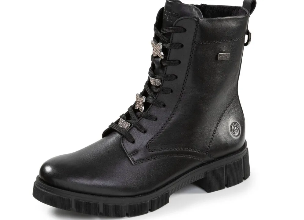 Stiefeletten aus beschichtetem Nappaleder, mit Klimamembrane ausgestattet: Weite G, Schnürung mit funkelndem Metallschmuck, Innenreißverschluss, wärmendes Plüschfutter, gepolsterte Decksohle, leichte TR-Profilsohle sowie 20 mm Absatz. Schafthöhe ca. 17 cm