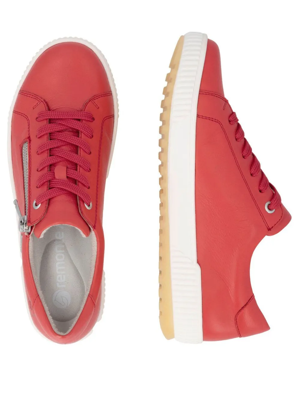 Sneaker aus Nappaleder mit Schnürung und seitlichem Reißverschluss: Weite G, mit Klimamembrane ausgestattet, Textilfutter, herausnehmbares Fußbett, leichte TR-Laufsohle mit 10 mm Keilabsatz