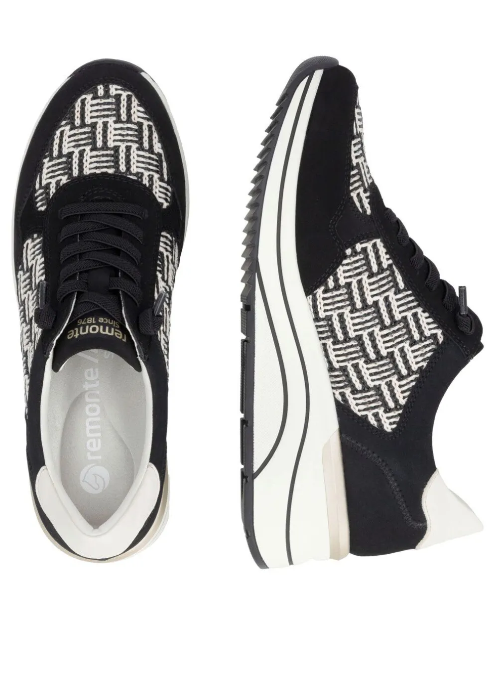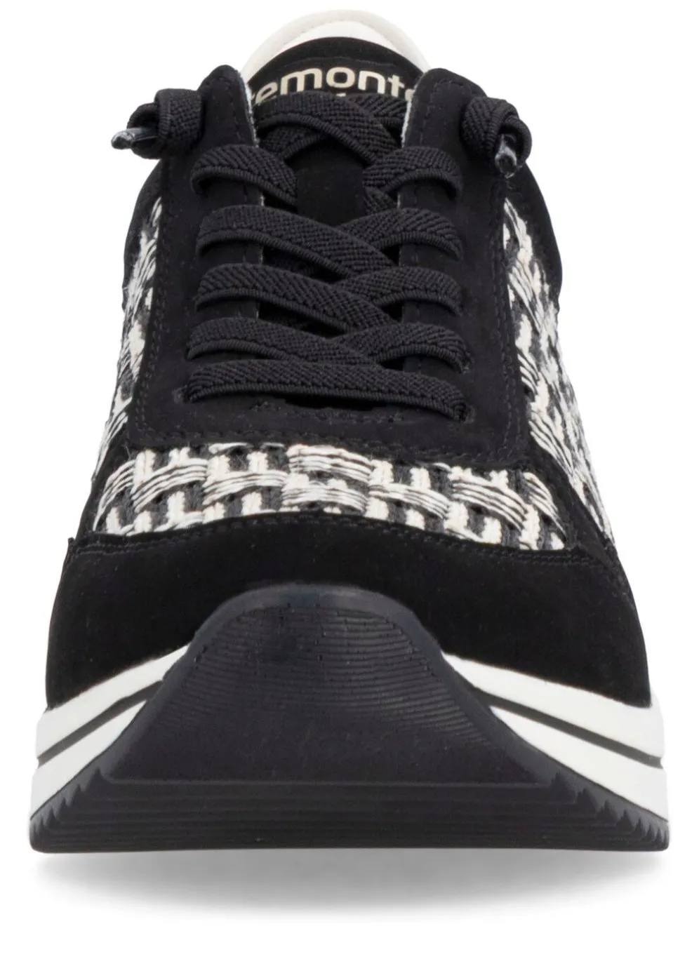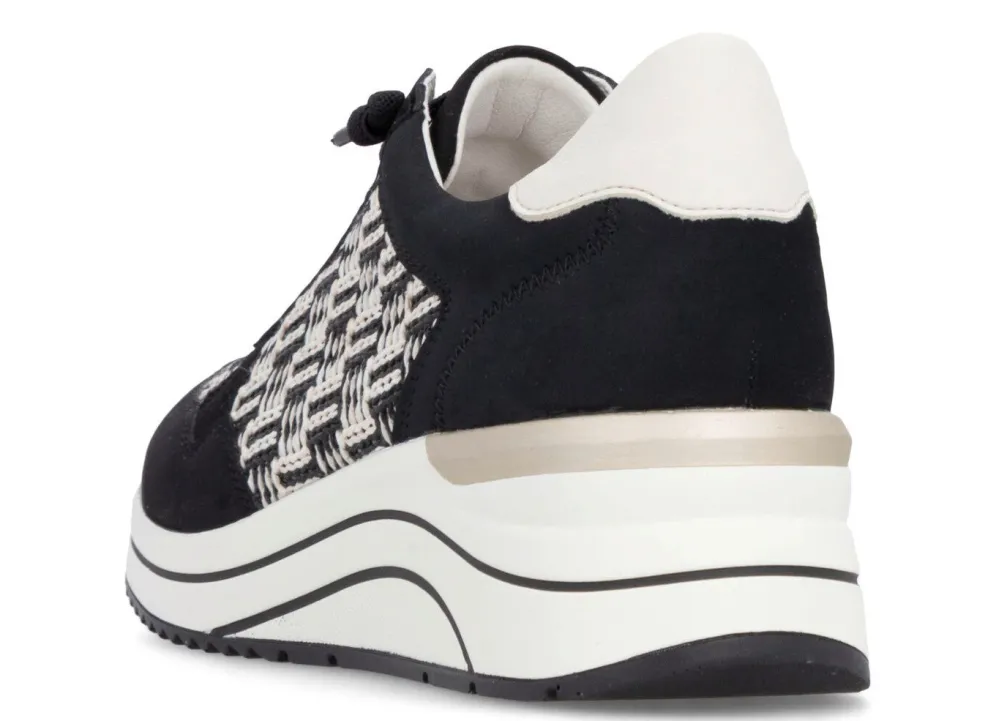 Sneaker aus teilweise schimmerndem Synthetik mit Flechtdurchzügen und elastischer Zier-Schnürung: Weite H, Futter, herausnehmbares Fußbett, leichte PU-Laufsohle sowie 30 mm Keilabsatz