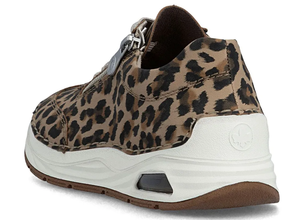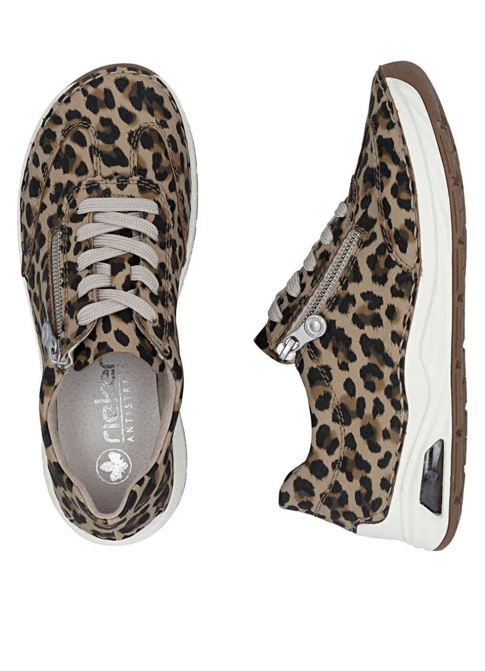 Sneaker in Braun aus Synthetik, mit rassigem Leo-Print: Schnürung und praktischer Seitenreißverschluss, Textilfutter, gepolsterte Leder-Decksohle, leichte Synthetik-Sohle sowie 15 mm Keilabsatz mit sichtbarem Luftpolster
