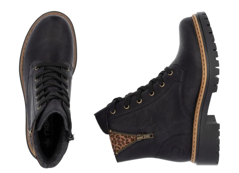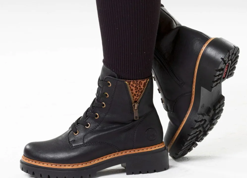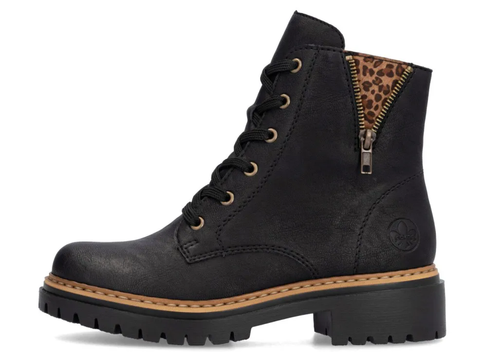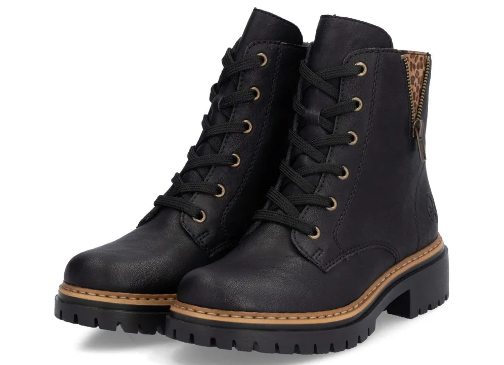 Stiefeletten aus weichem Synthetik mit Leo-Detail, in Beige-Schwarz aus kariertem Textilmaterial mit schimmernden Metallic-Durchzügen: Zier-Reißverschluss, Schnürung und Innenreißverschluss, wärmendes Textilfutter, gepolsterte Decksohle, leichte Synthetik-Profilsohle sowie 20 mm Absatz. Schafthöhe ca. 14 cm
