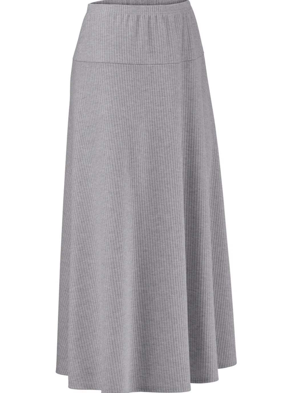 Attraktiver Rock von Stilschmiede in bequemer Schlupfform mit schmalem Dehnbund sowie figurgünstiger, breiter Passe rundum. Die leichte Tellerform verleiht diesem Modell seine duftige Weite. Gesamtlänge ca. 78 cm, bei K-Gr. ca. 72 cm.