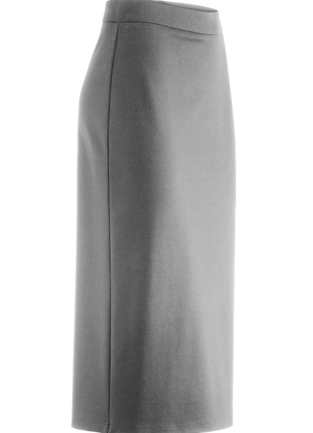 Eleganter Rock in schmaler Schnittführung und in Schlupfform sowie mit glatt anliegendem Rundum-Dehnbund. Länge ab Taille ca. 66 cm, bei K-Gr. ca. 62 cm.