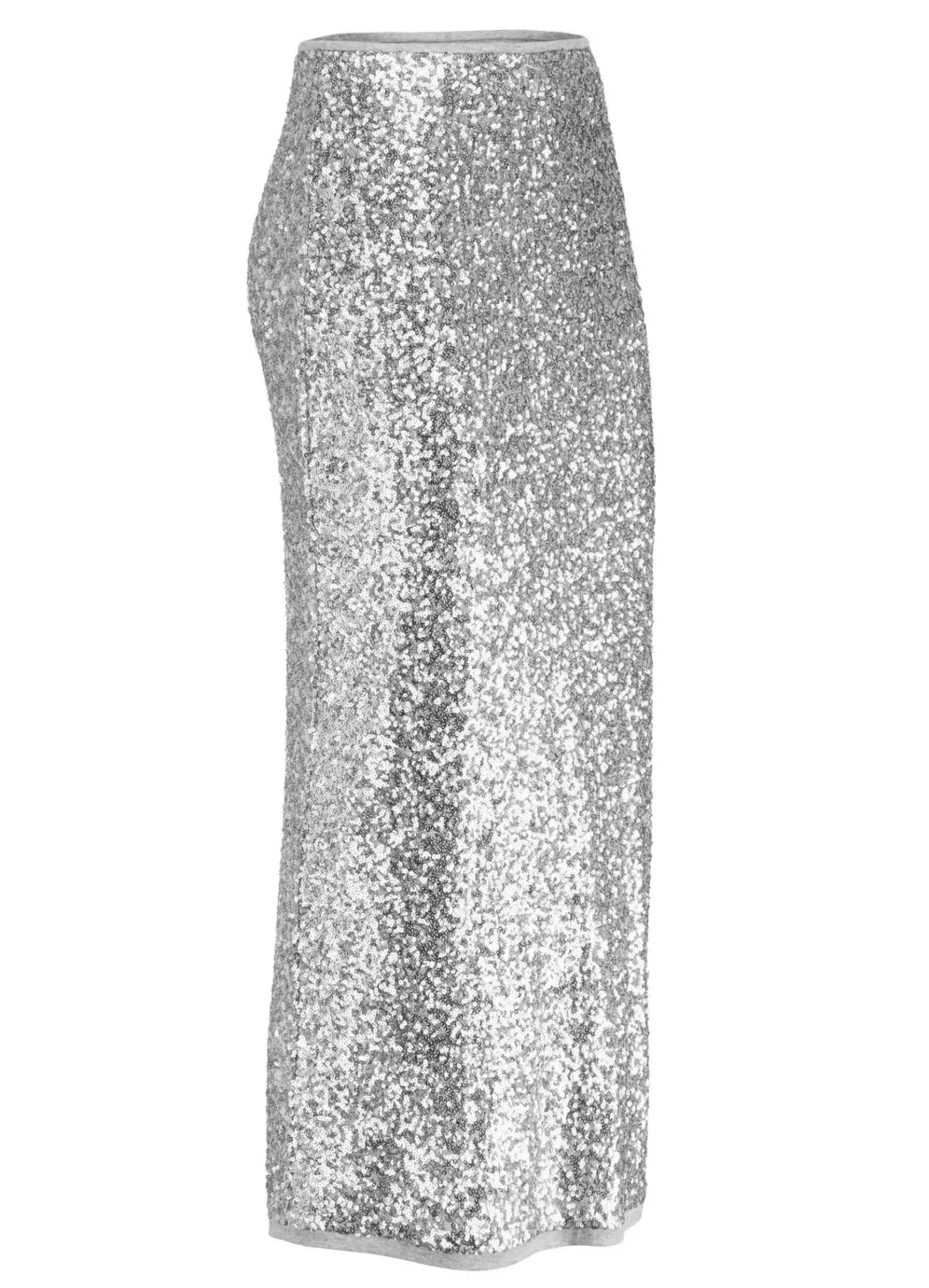 Schicker Rock mit funkelnden Pailletten in gerader Schnittführung von TIZIA mit Dehnbund rundum. Gesamtlänge ca. 76 cm, bei K-Gr. ca. 72cm.