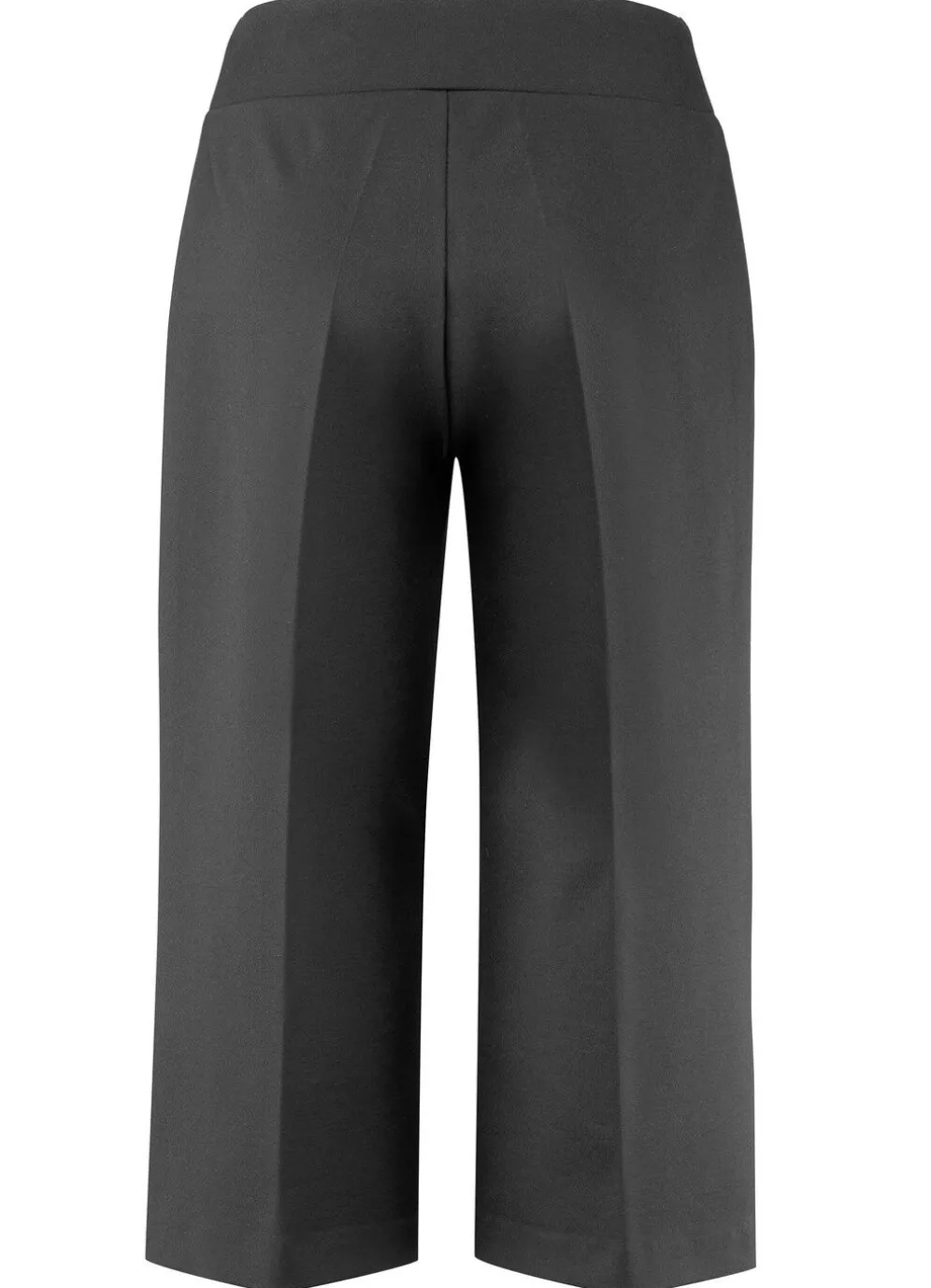 Attraktive Culotte von laurakent in Schlupfform mit breiter Passe und Dehnbund rundum, Bügelfalten im Vorder- und Rückteil sowie Seitentaschen. Innenbeinlänge ca. 46 cm, Fußweite ab 64 cm.