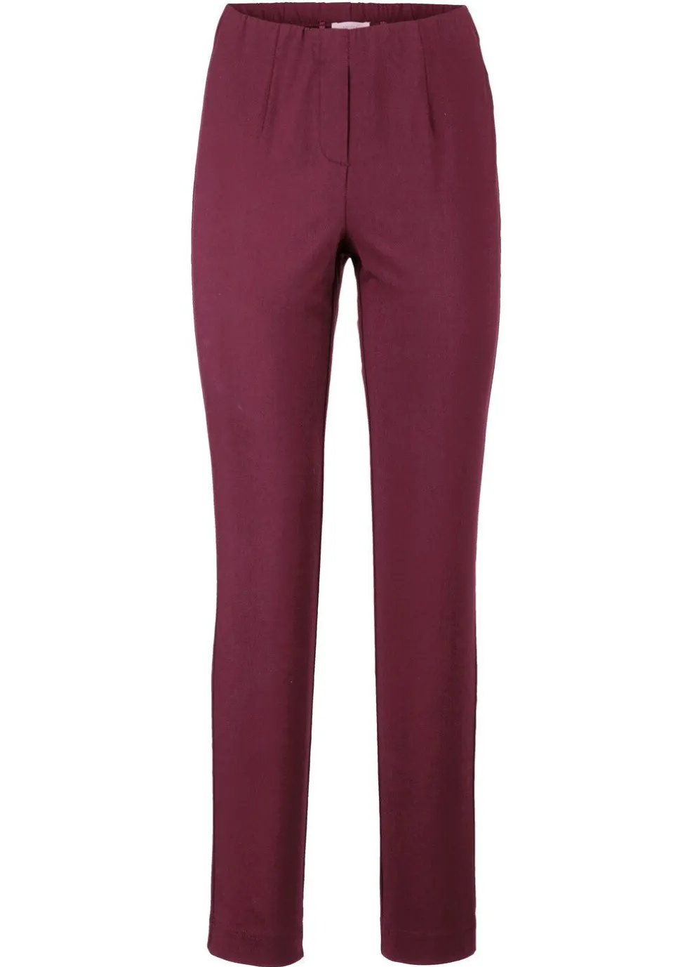 Schicke Hose in bequemer Schlupfform: angeschnittener Bund, Reißverschluss-Zierblende, figurformende Abnäher unterhalb des Bundes im Vorderteil sowie abgesteppte Teilungsnähte im Rückteil. Innenbeinlänge ca. 76 cm, Fußweite ab 34 cm.