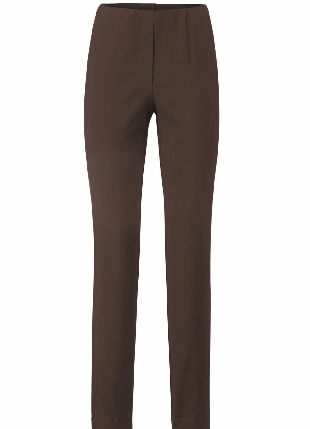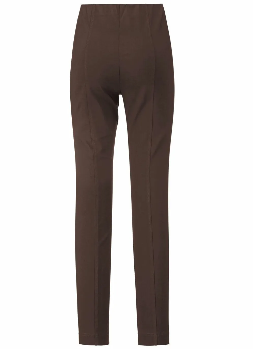 Schicke Hose in bequemer Schlupfform: angeschnittener Bund, Reißverschluss-Zierblende, figurformende Abnäher unterhalb des Bundes im Vorderteil sowie abgesteppte Teilungsnähte im Rückteil. Innenbeinlänge ca. 76 cm, Fußweite ab 34 cm.