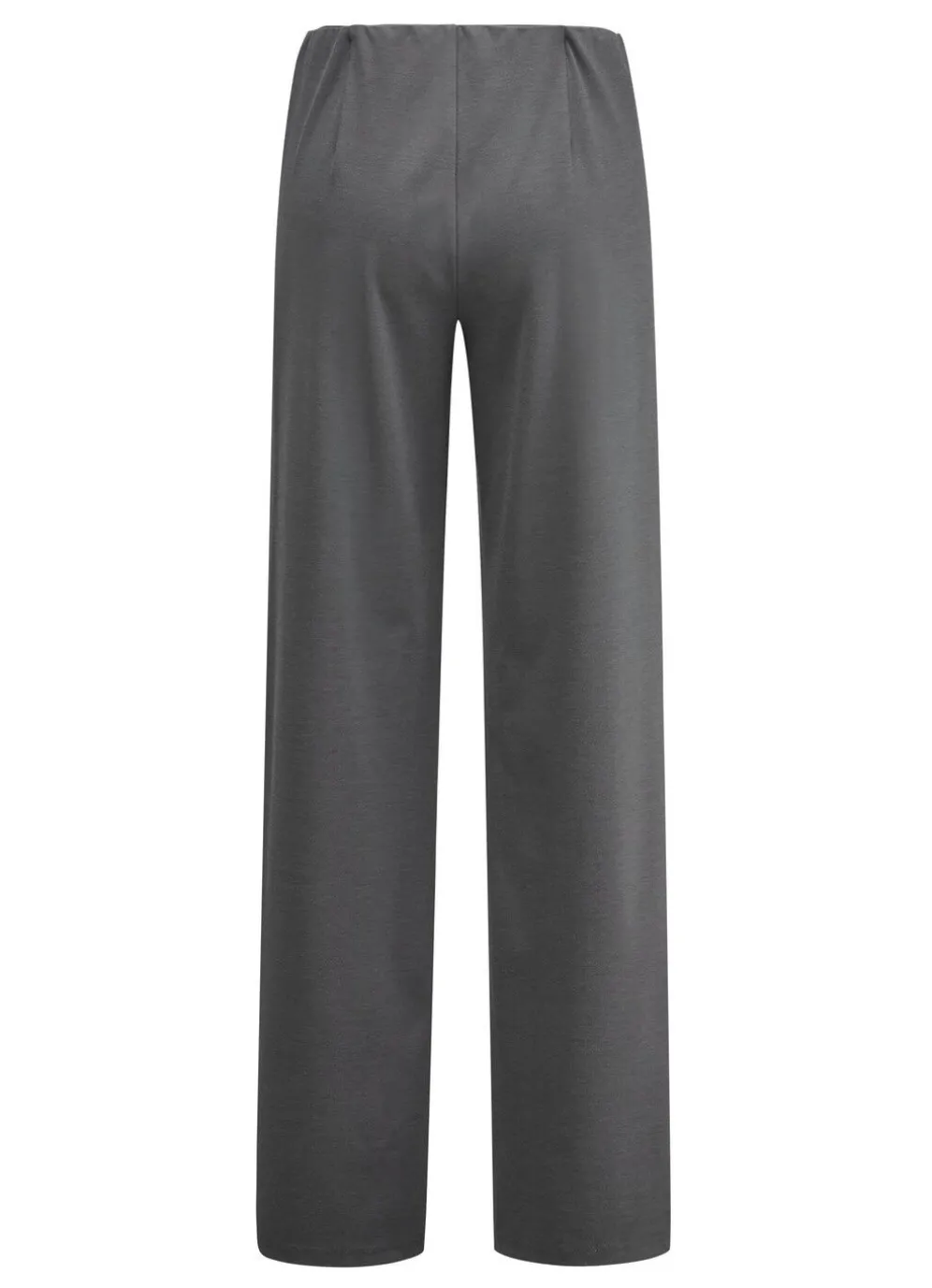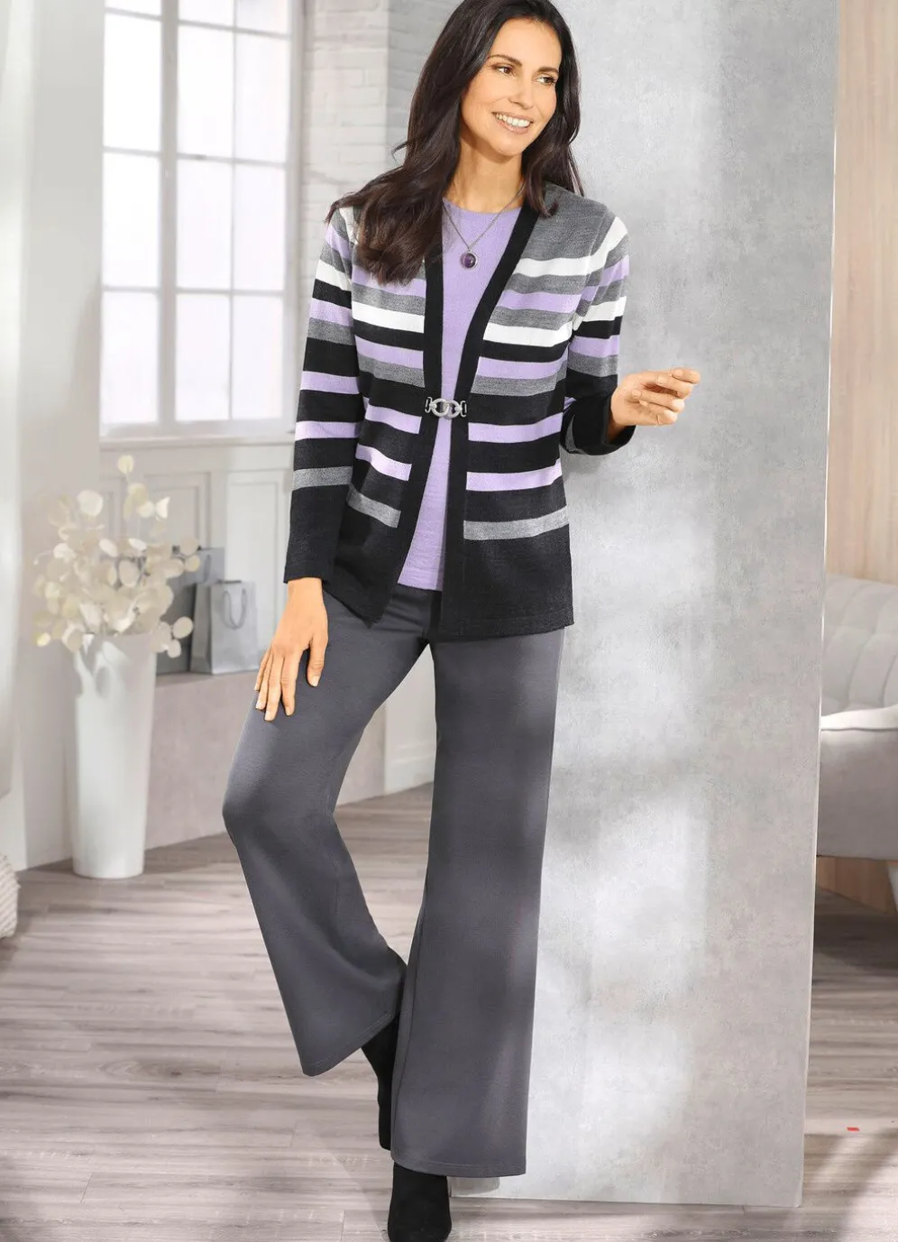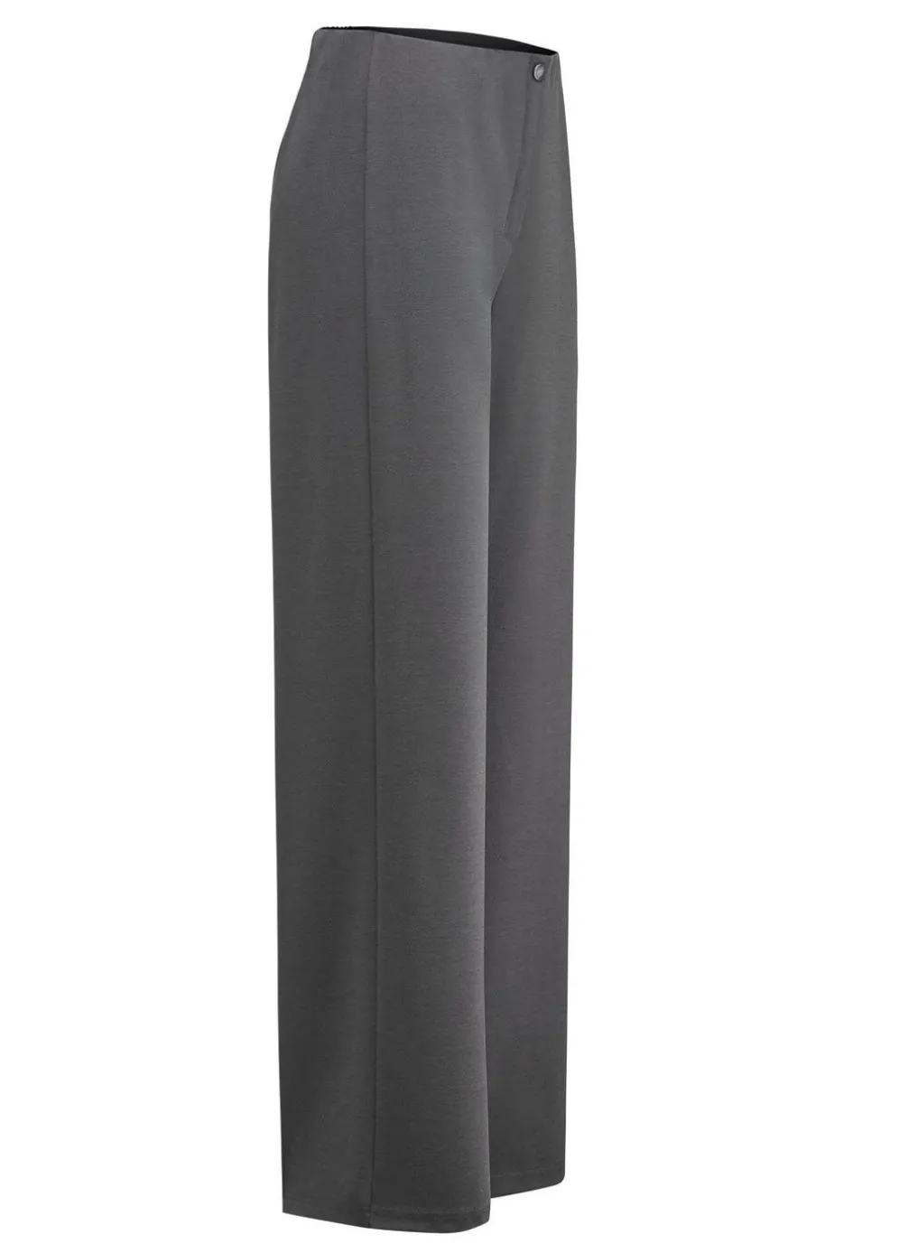 Schick und komfortabel zugleich präsentiert sich diese Hose in bequemer Weite mit angeschnittenem Bund, glatt anliegend dank der innenliegenden, angenehm weichen Gummibund-Einlage, Haken- und Reißverschluss, figurformende Abnäher unterhalb des Bundes im Rückteil. Innenbeinlänge ca. 78 cm, Fußweite ab 54 cm.