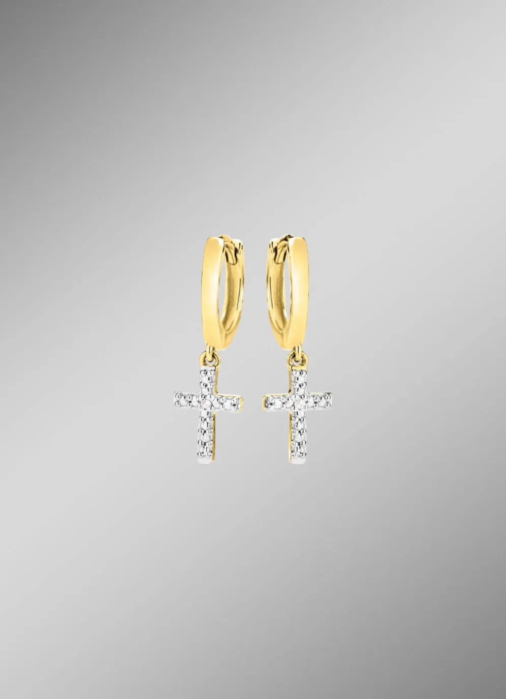 Klassisch mit einem Hauch Symbolkraft – diese Klappcreolen aus Gold 375/- fein vereinen elegantes Design mit ausdrucksstarker Bedeutung. Jeder Ohrring ist mit einem weißen Diamanten in Piqué 2-Reinheit besetzt, der dezent funkelt und dem Schmuckstück eine edle Note verleiht. Das filigrane Kreuzmotiv (6×7 mm) setzt einen stilvollen Akzent und macht die Creolen zu einem besonderen Blickfang. Mit einem Durchmesser von 10 mm sind sie angenehm zu tragen und passen perfekt zu jedem Anlass – ein Schmuckstück voller Charme und Persönlichkeit.