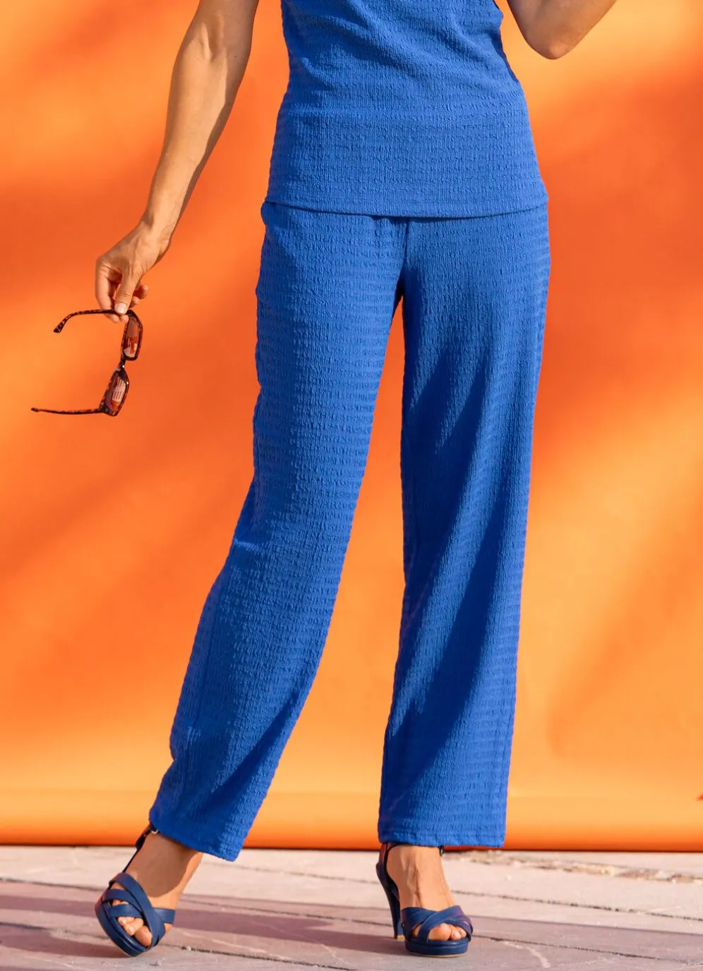Tragangenehme, royalblaue Schlupfhose in weiter, gerader Form, mit Dehnbund rundum sowie zwei Eingriffstaschen.