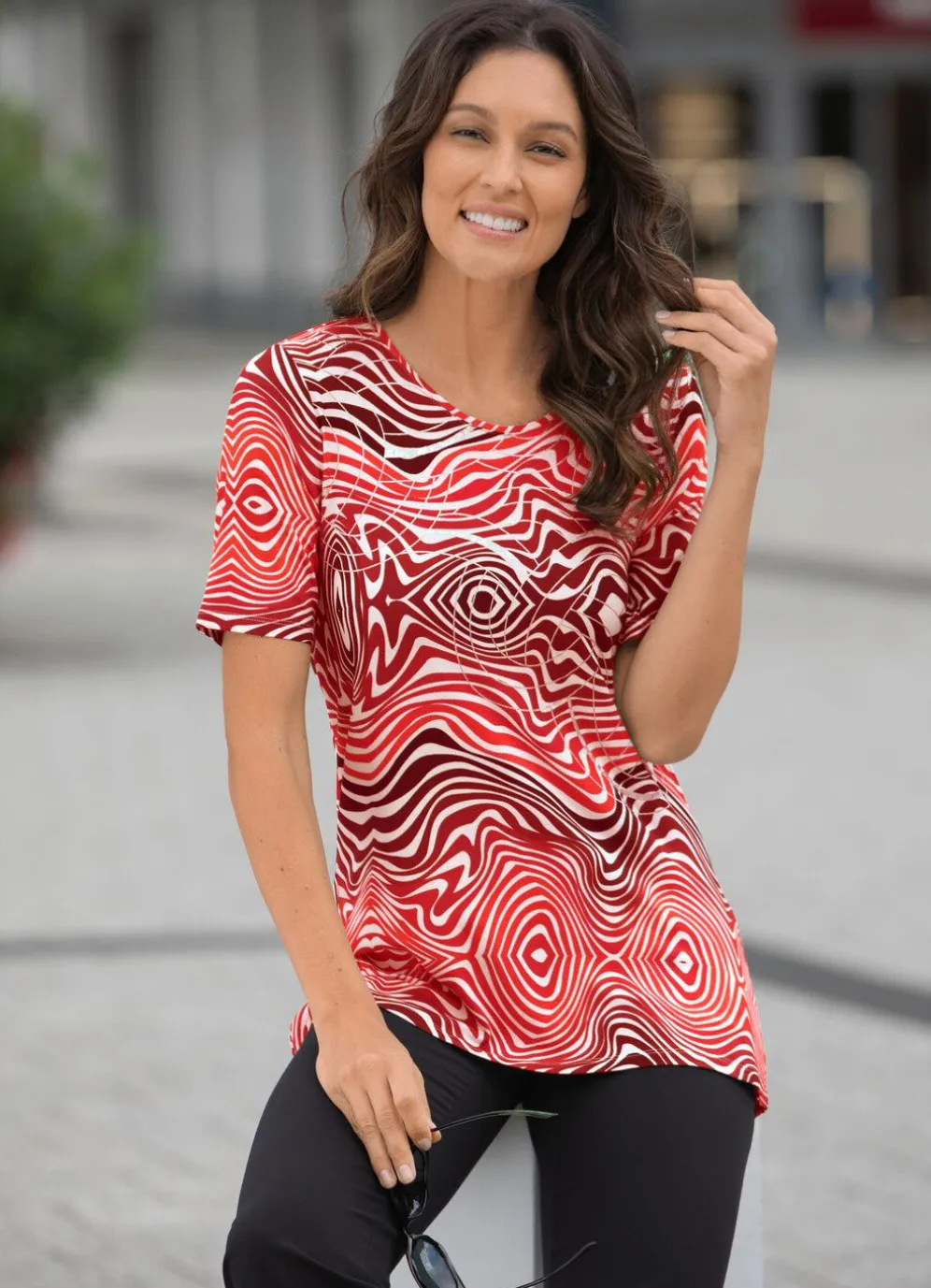 Jedes Teil ein Unikat! Der markante, farbbrillante Allover-Druck mit silberfarbener Folie im Vorderteil macht dieses flotte Shirt zu einem echten Blickfang.