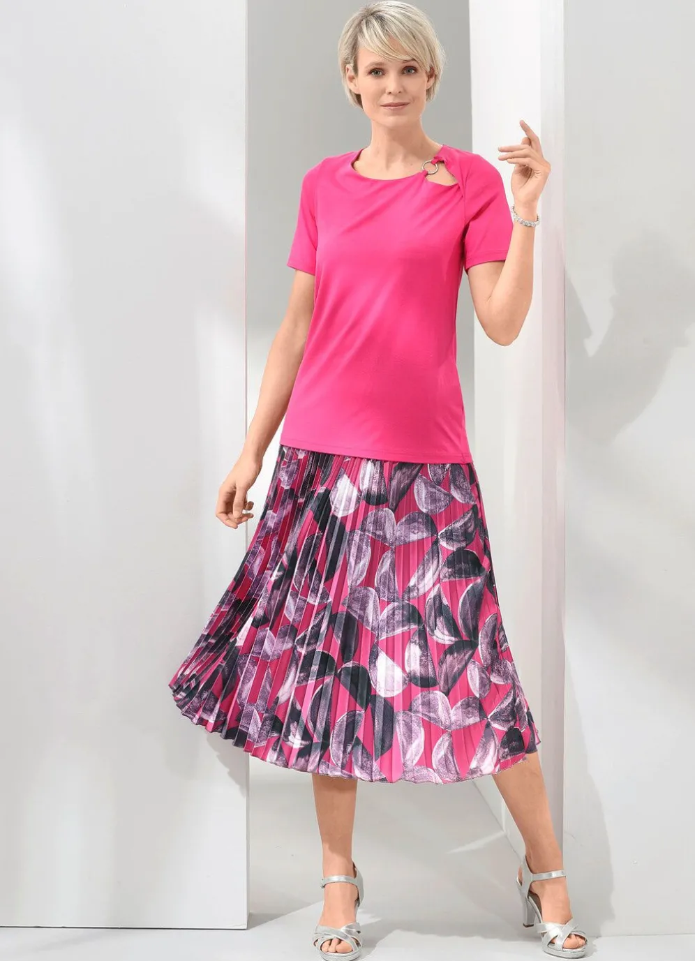 Shirt mit interessantem Halsausschnitt und Zierring.