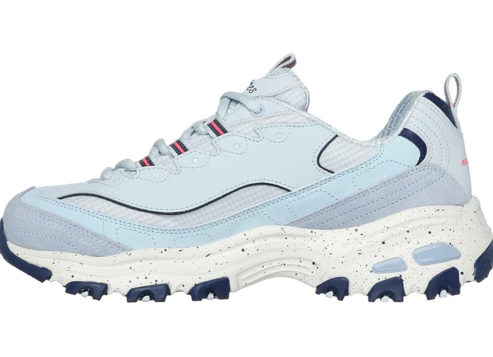 Modischer Schnür-Sneaker in Blau-Pink aus Synthetik- und Meshmaterial mit Veloursleder-Besätzen: gepolstertes Textilfutter, herausnehmbares Fußbett, Synthetik-Profilsohle sowie 20 mm Keilabsatz