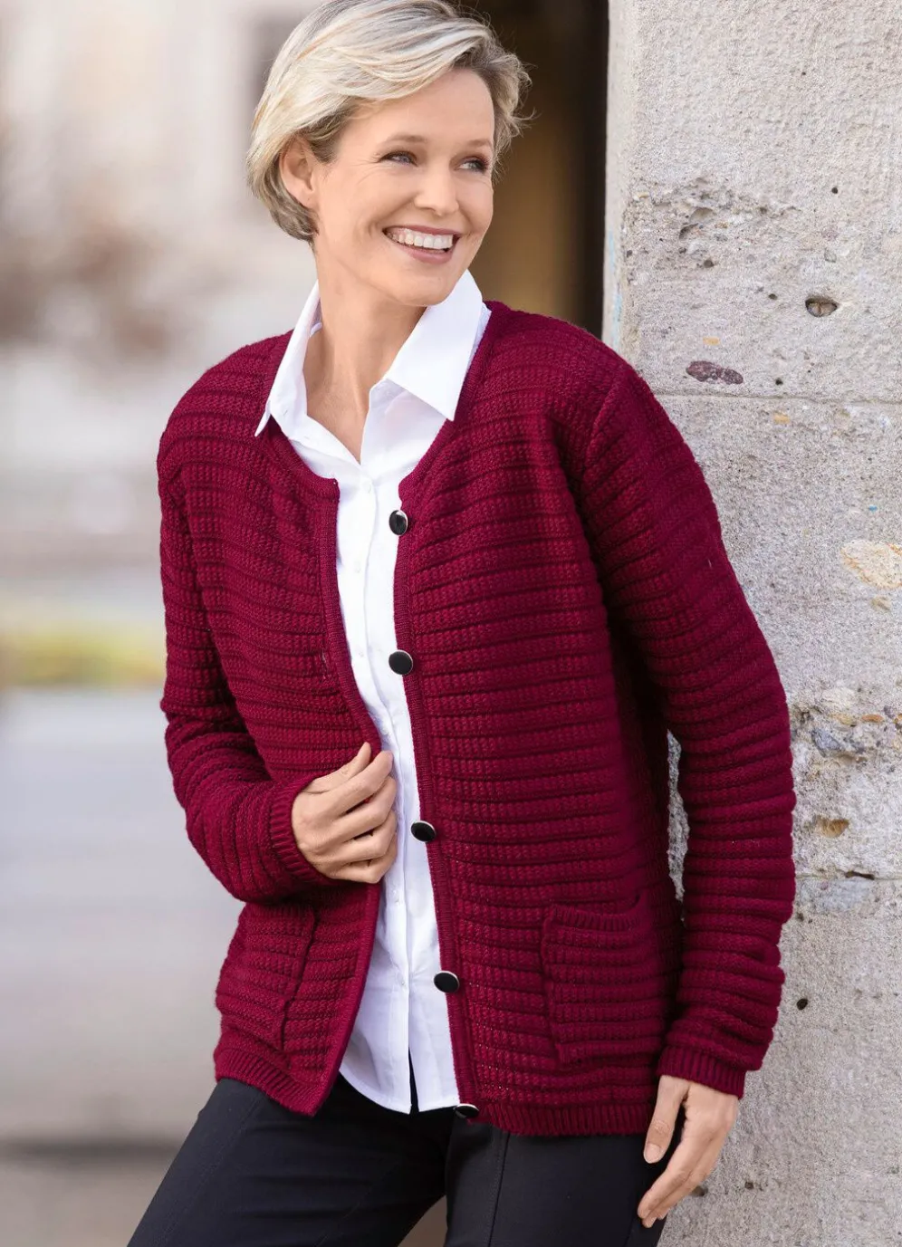 Strickjacke mit aufgesetzten Taschen