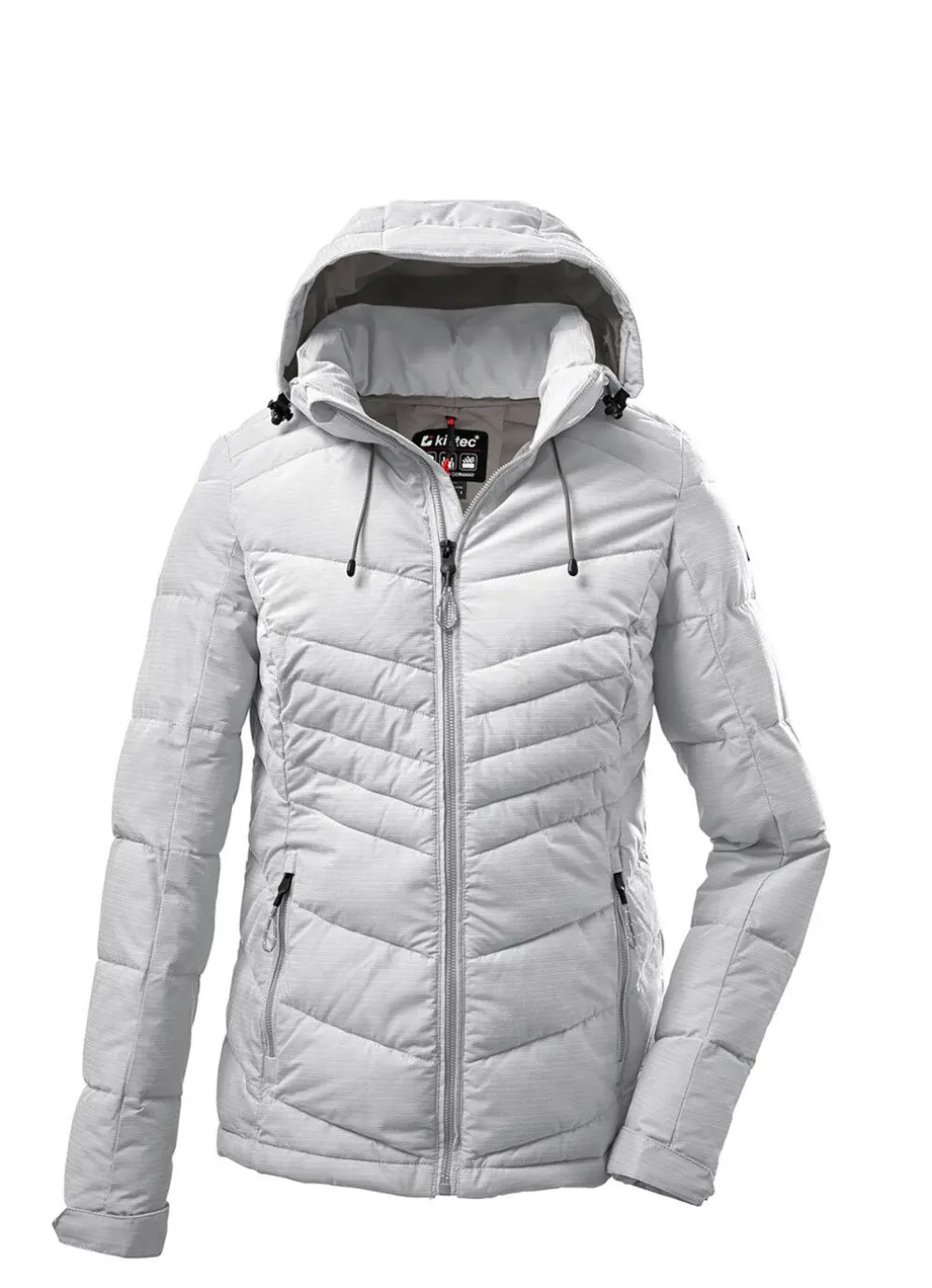 Trendige Damen-Funktionsjacke in Daunen-Optik mit raffinierten Steppungen. Neben einem hohen Tragekomfort und praktischen Details verfügt die Jacke über hochfunktionelle Eigenschaften. Durch die 10.000 mm Wassersäule und das atmungsaktive TPU-Laminat ist die Jacke wasser- und windabweisend. Zusätzlich ist sie mit mit einer 3.000 g/m2/24 h Wasserdampfdurchlässigkeit ausgestattet.