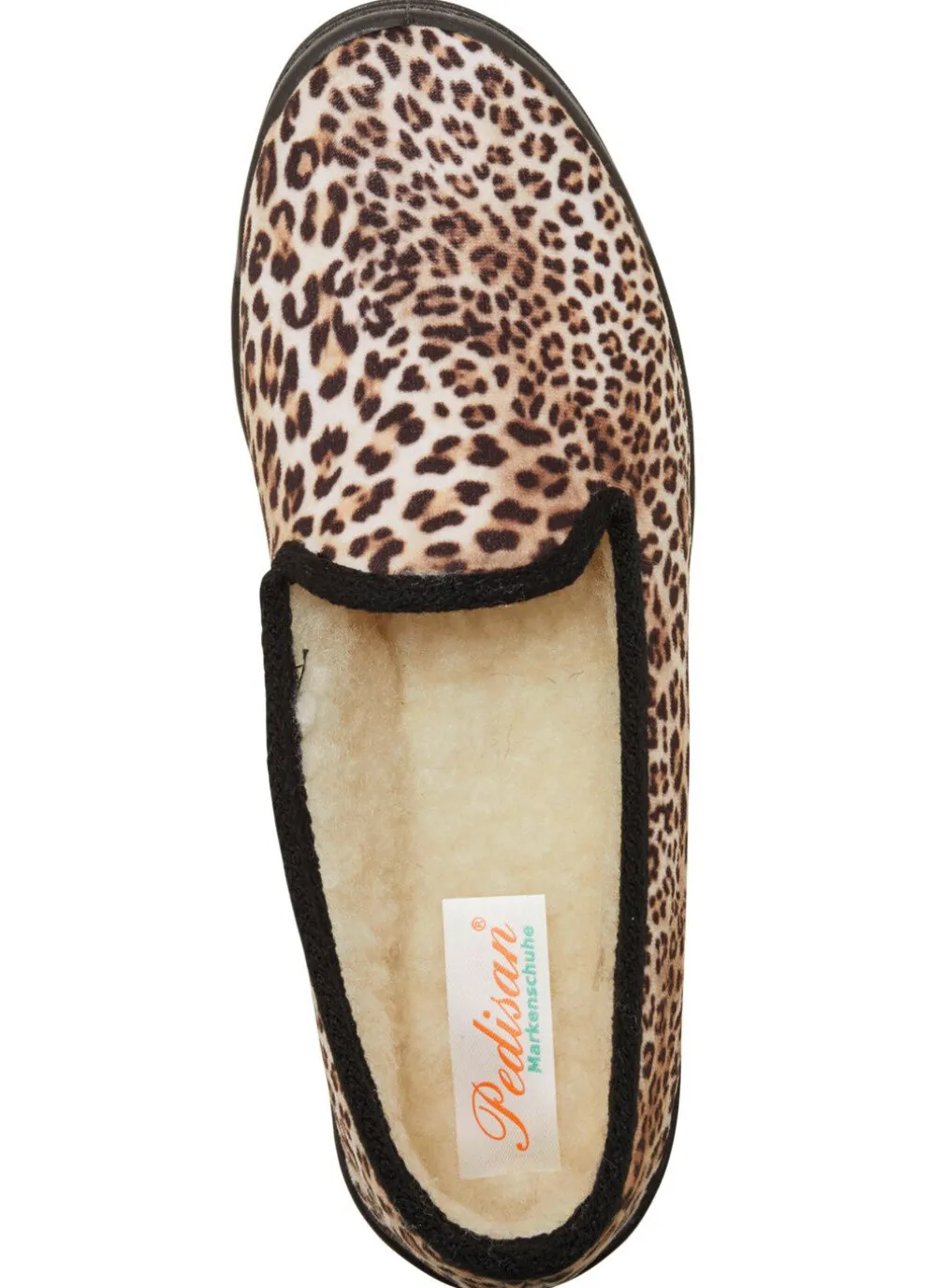 Gemusterte Hausschuhe aus Textil in Braun, mit angenehmer Polsterung: in Weite H, Warmfutter und Fußbettbezug aus reiner Wolle, superleichte PU-Laufsohle sowie 15 mm Keilabsatz