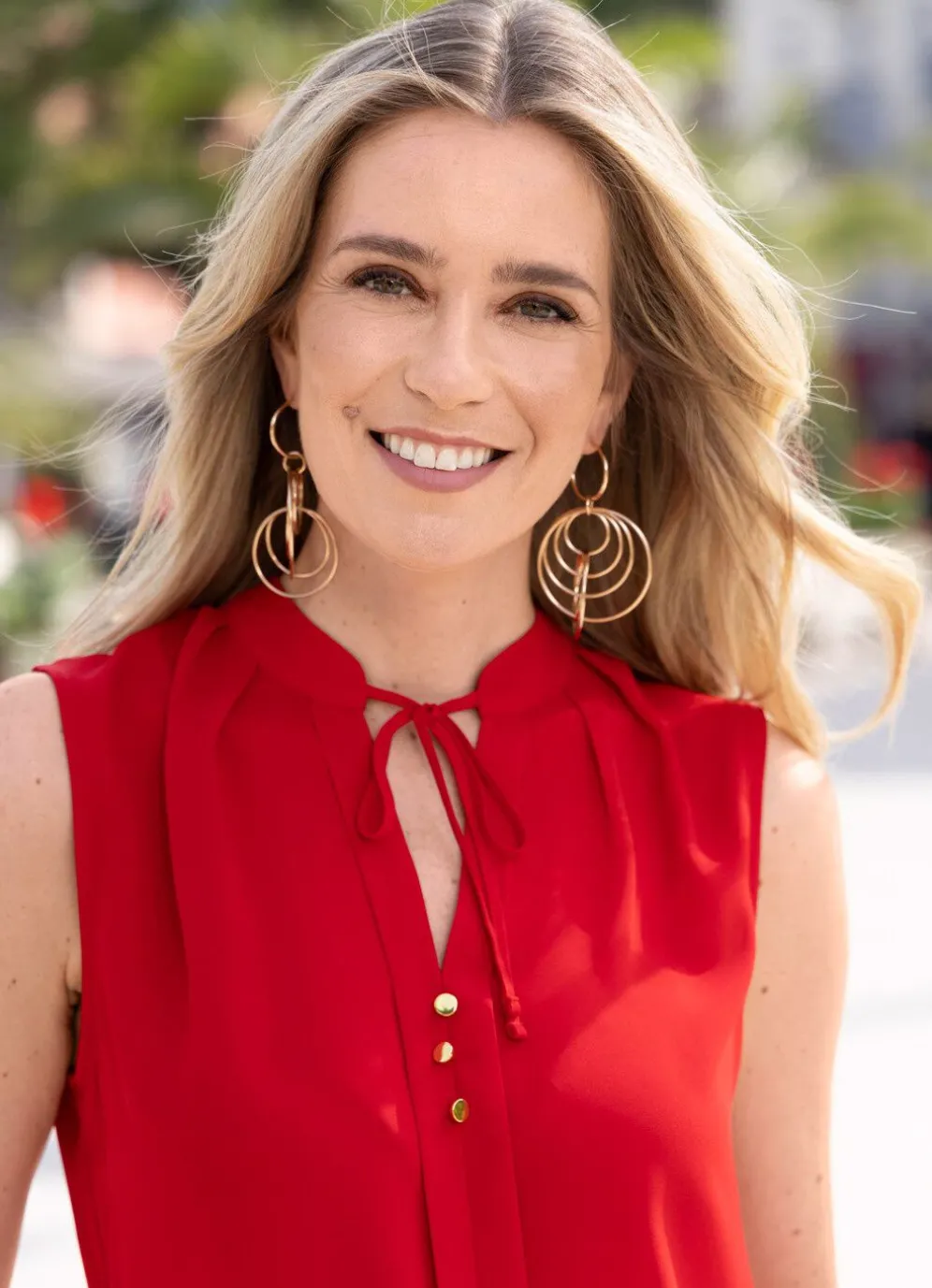 Ärmellose Tunika mit kurzem Schlitz und Bindebändchen am Stehkragen mit hübscher Fältelung sowie Zierknopfleiste mit goldfarbenen Schmuckknöpfen an der Biesenzier im Vorderteil.