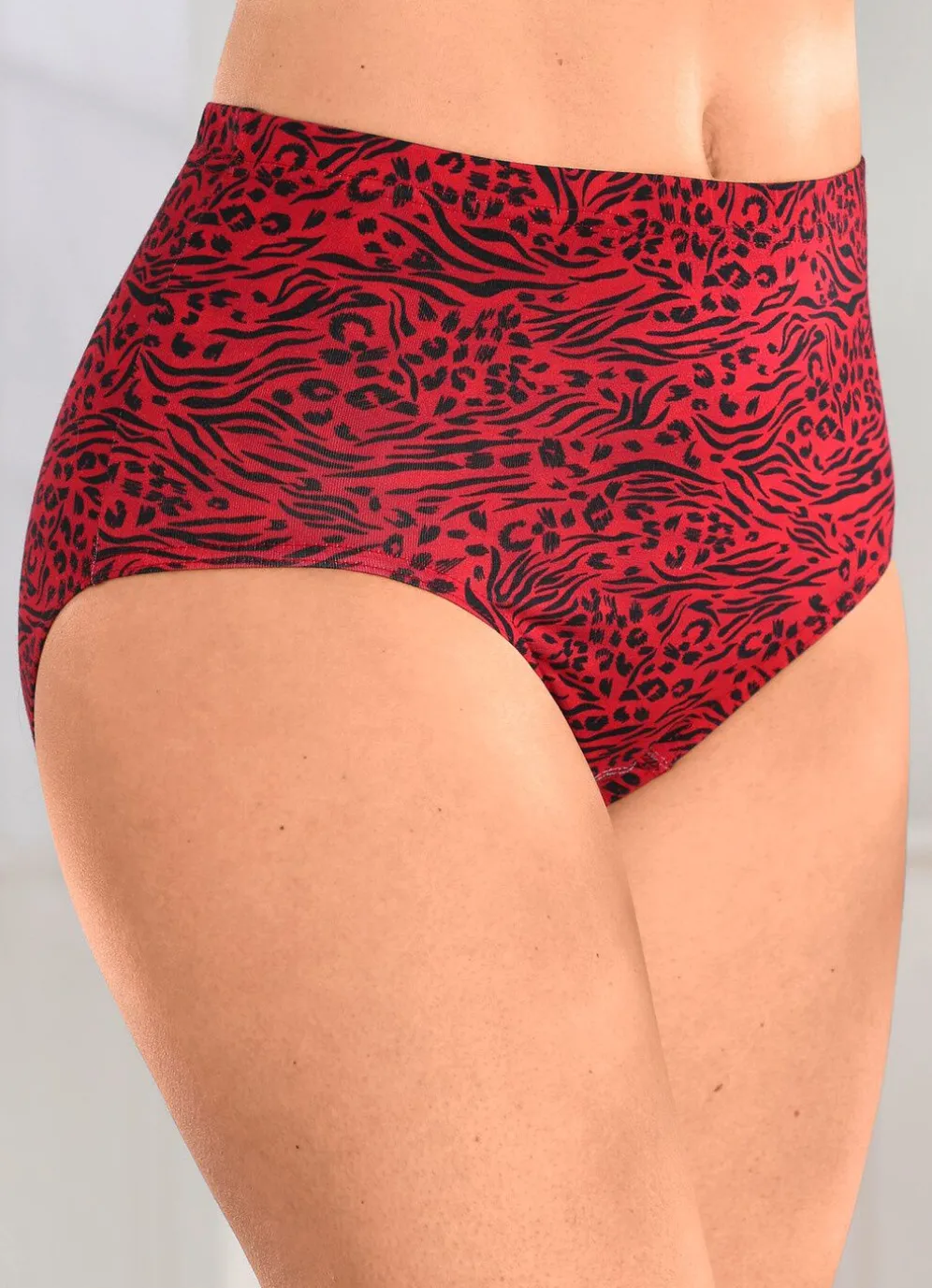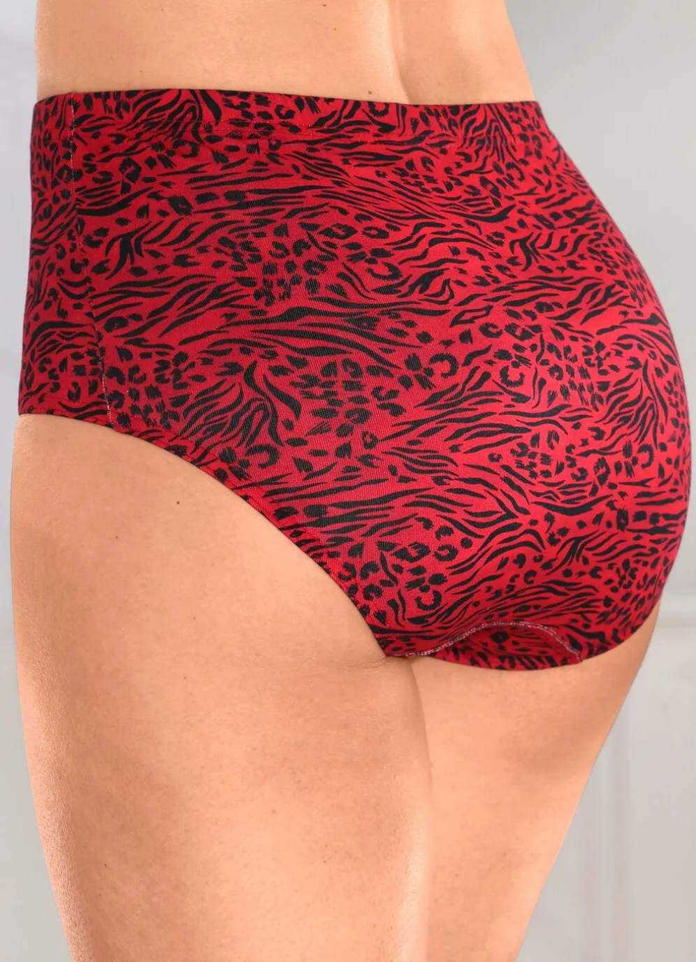 Rot-schwarz dessinierter Slip mit Gummizug im Bund.