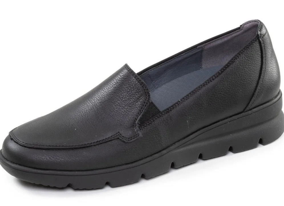 Edle Slipper aus teilweise glänzend geprägtem Leder mit seitlich eingesetzten Gummizügen: Weite H, ledergefüttertes Quartier, herausnehmbares Lederfußbett, leichte Synthetik-Profilsohle sowie 25 mm Keilabsatz