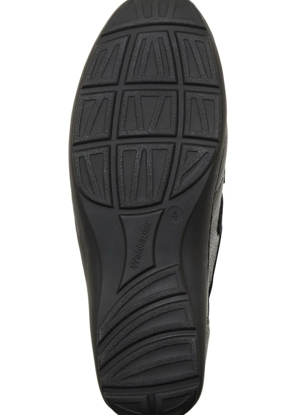 Slipper aus Rind-Nappaleder, in Weiß-Bunt aus floral bedrucktem Synthetikmaterial, in Burgund aus Rind-Knautschlackleder: Weite H, zwei verstellbare Klettspangen, ledergefüttertes Quartier, herausnehmbares Leder-Massagefußbett, leichte PU-Handnaht-Profilsohle sowie 20 mm Keilabsatz